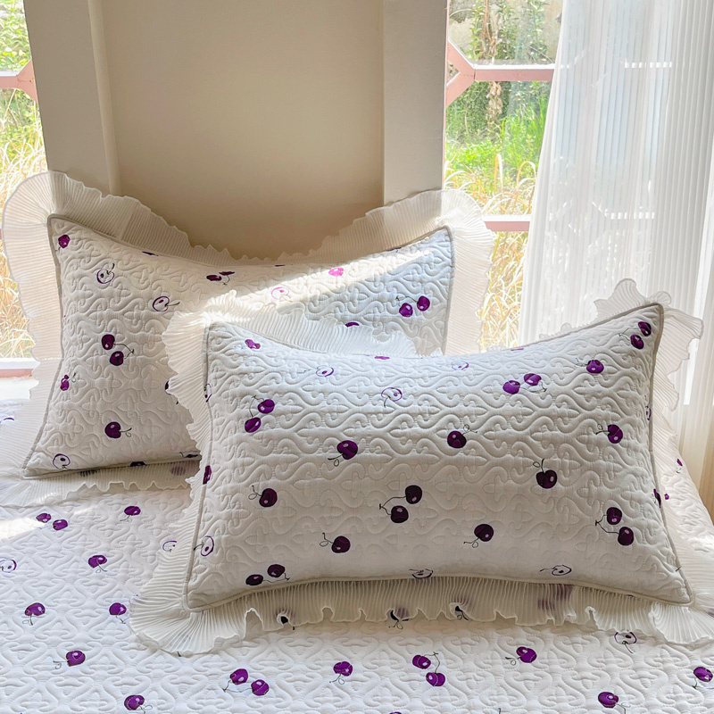 添越 2024小清新韩版蕾丝花边纯棉夹棉床盖三件套全棉-紫色小樱桃