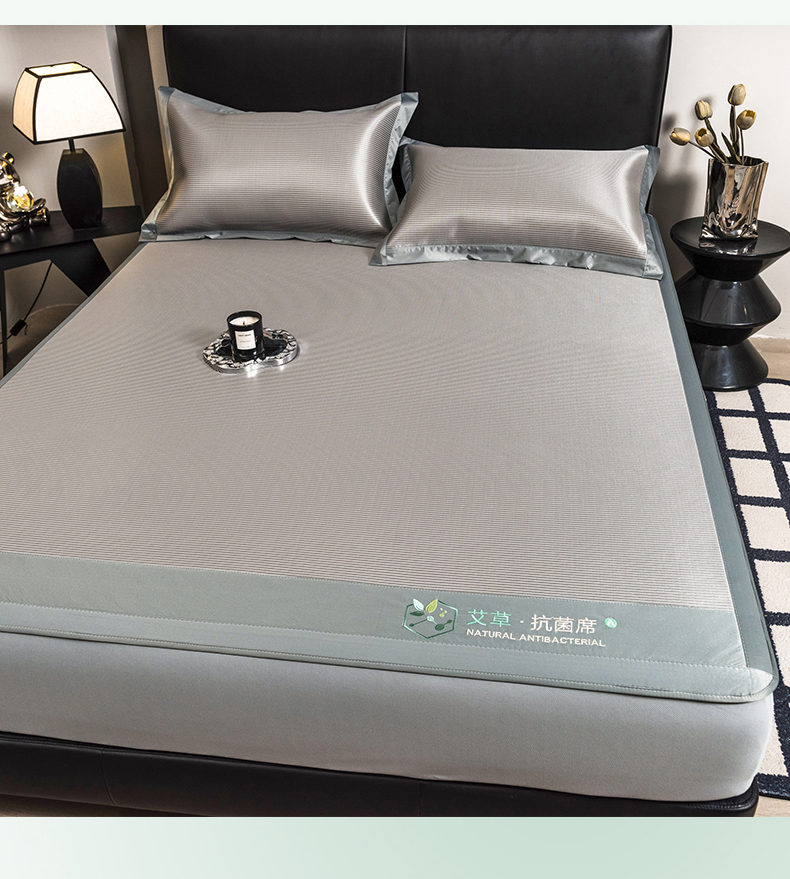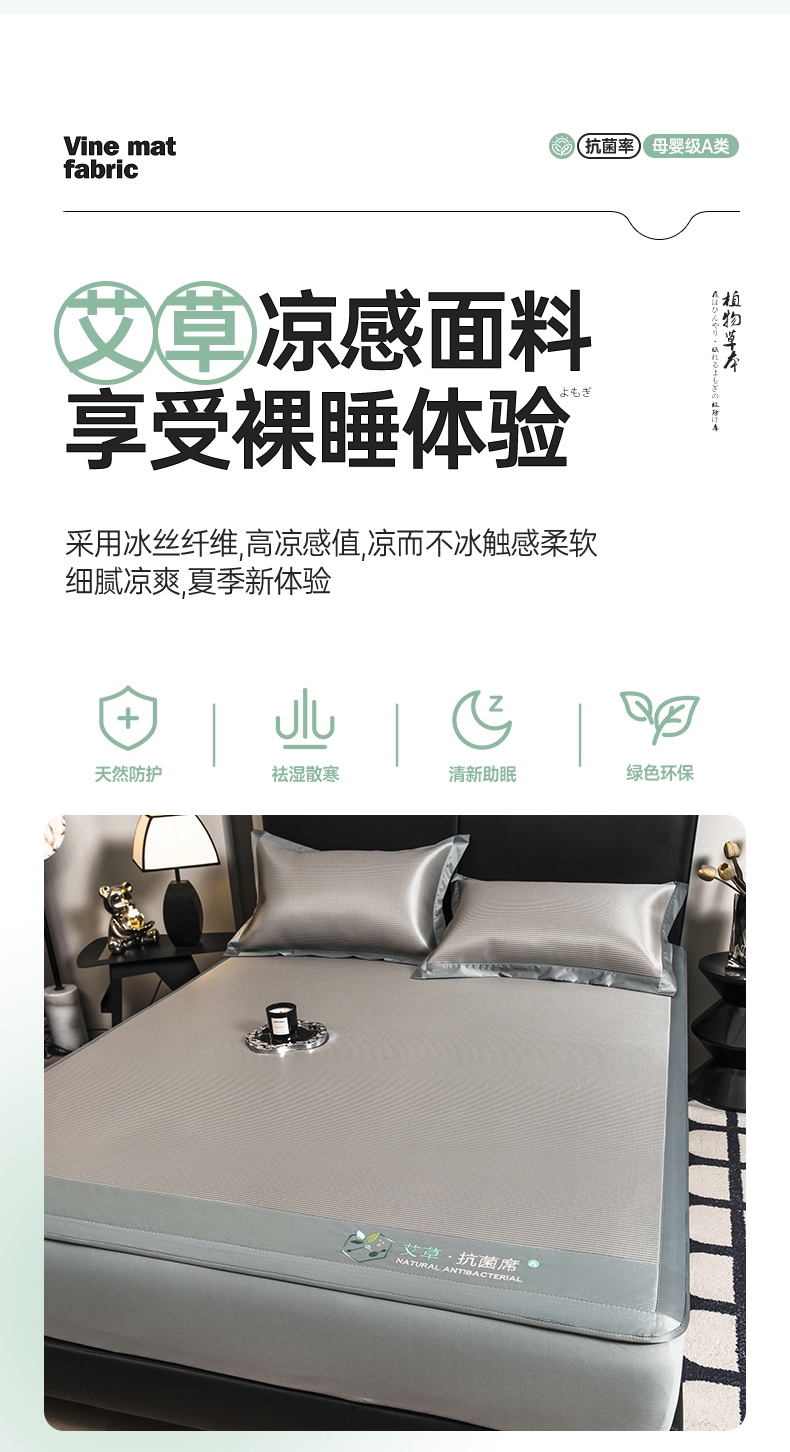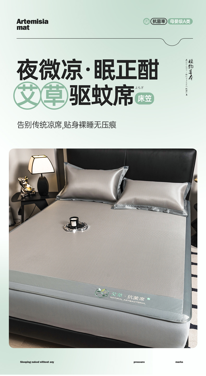 商品名称:全季2024新款5A加厚加密艾草碳光席冰丝席-床笠款 浅灰