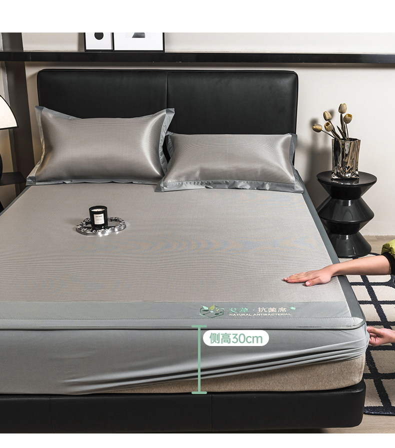 全季2024新款5A加厚加密艾草碳光席冰丝席-床笠款 浅灰