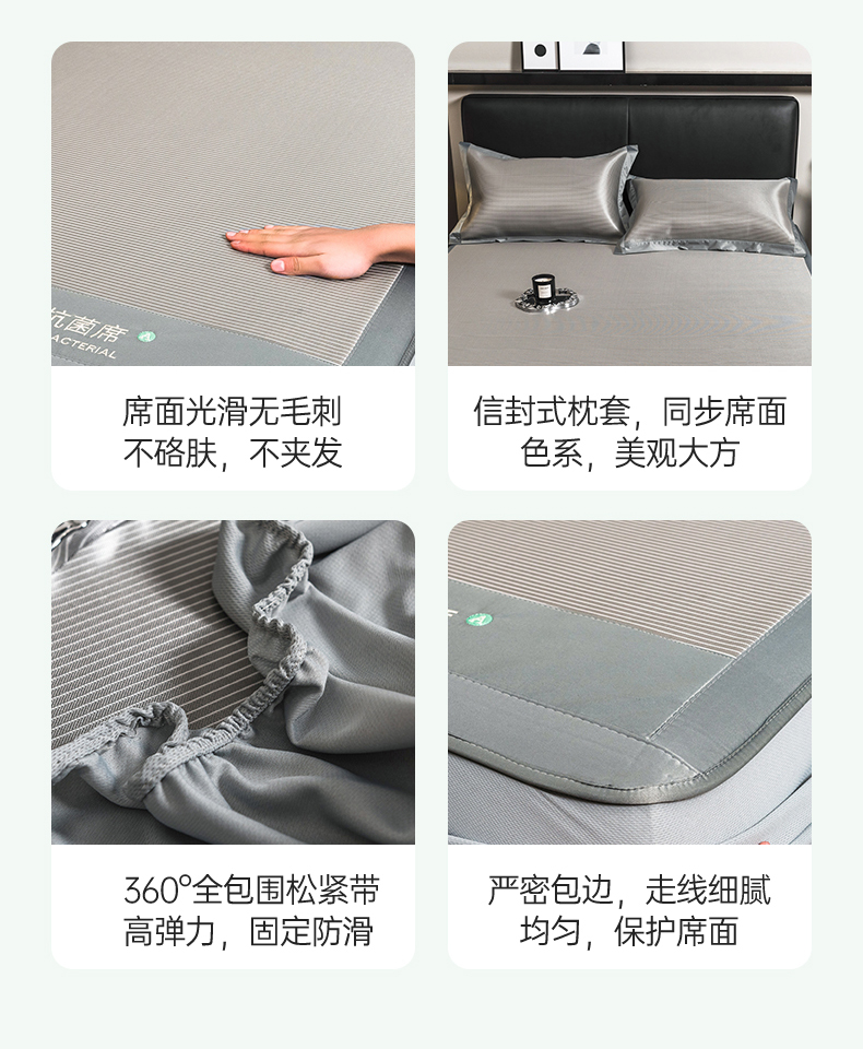 (总)全季家居 2025新款A类抗菌防螨幸运星系列冰藤席凉席席子,金咖 床席,水绿 床席,银灰 床席,金咖 床笠,水绿 床笠,银灰 床笠
