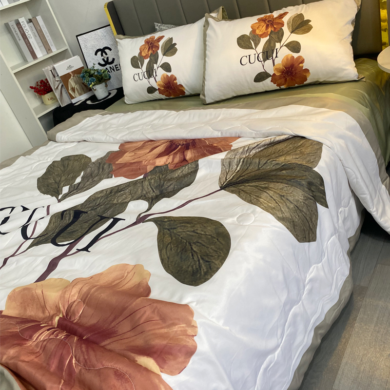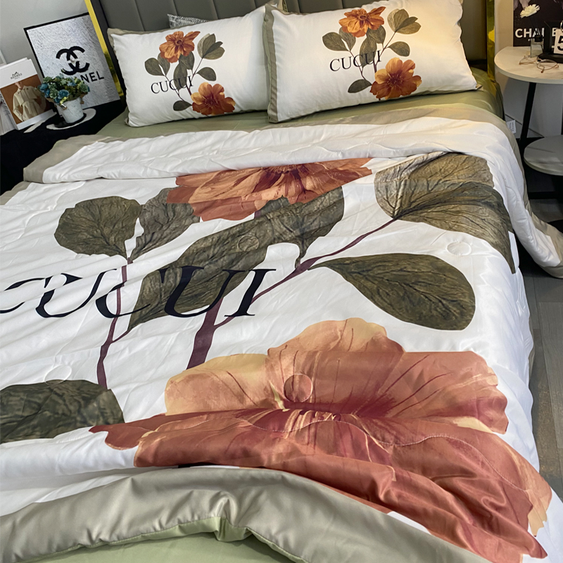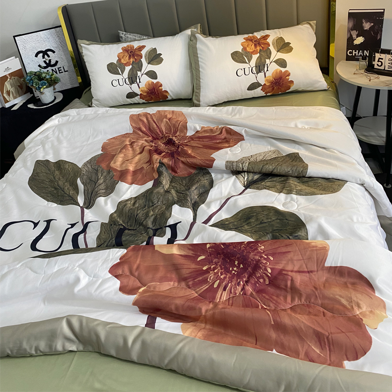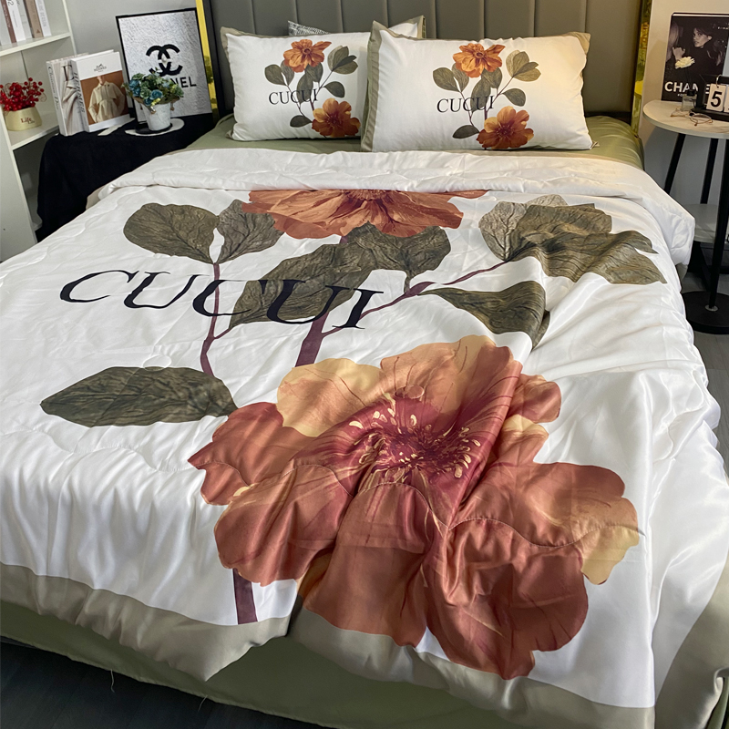 商品名称:色鬼布艺 2024新款大版数码印花水洗真丝夏被四件套 绿花