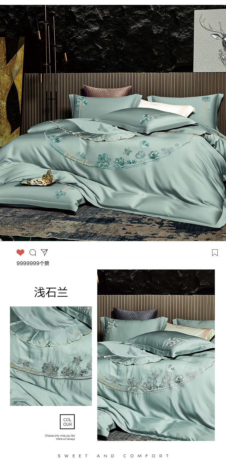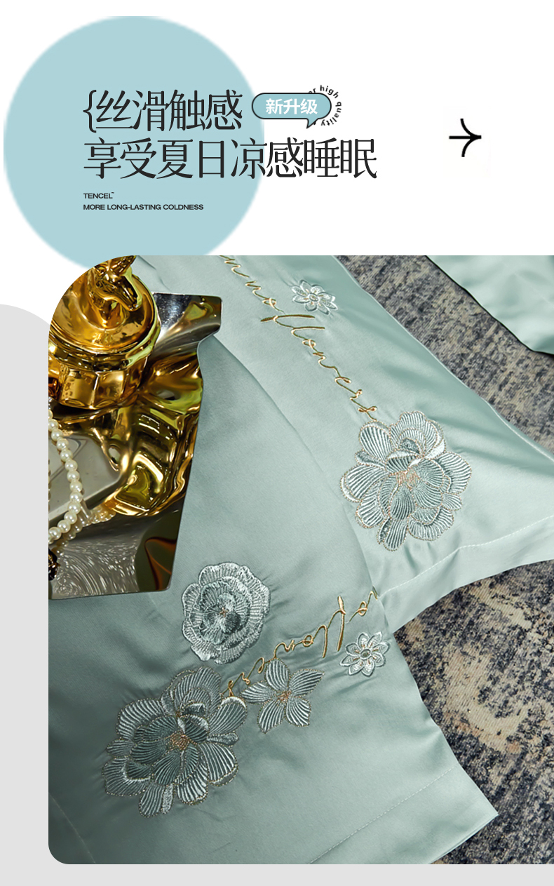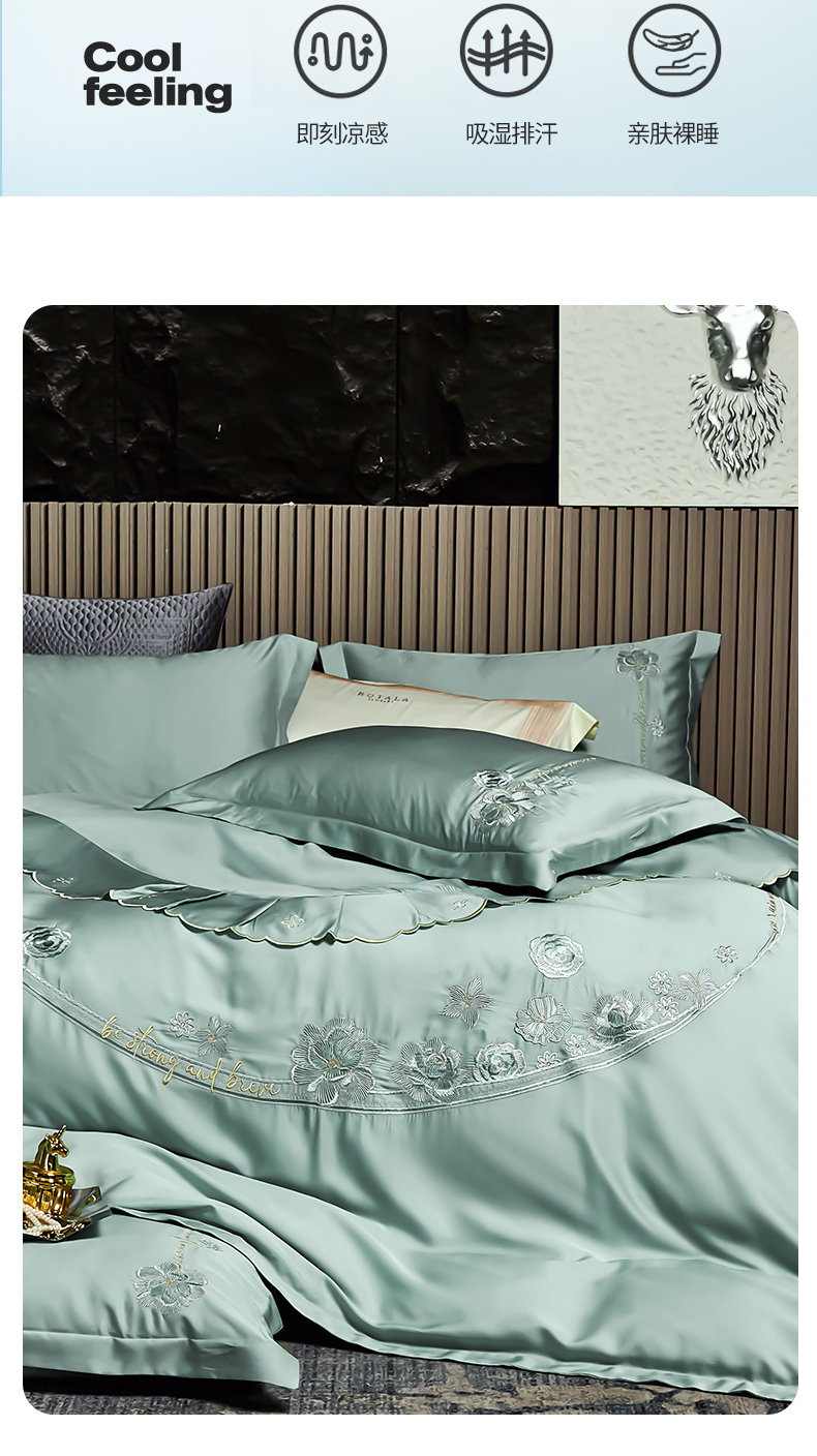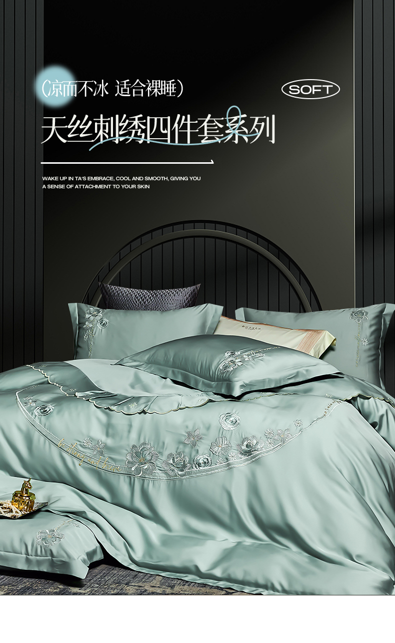 商品名称:保罗圣迪奥 2024新款长安如故系列天丝四件套 浅石兰