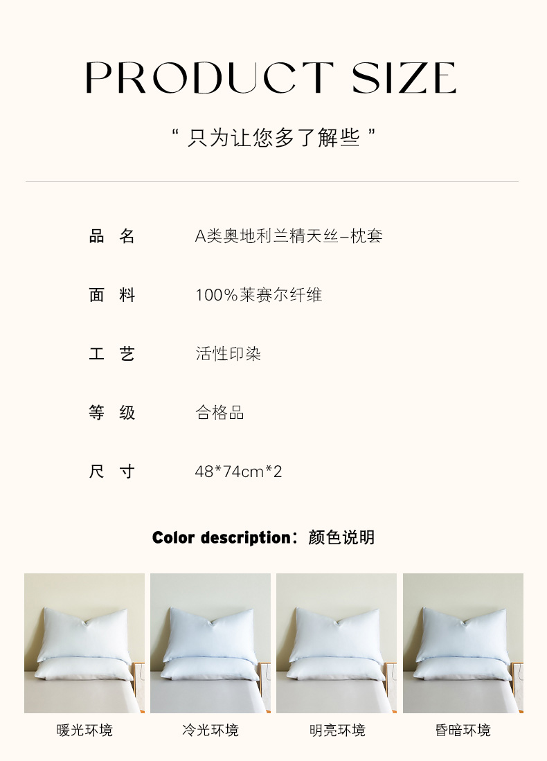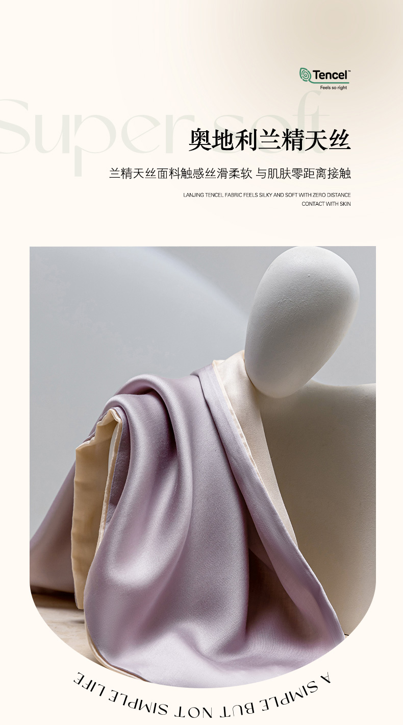 商品名称:云栖家居 202460支A类兰精天丝系列单品枕套(风格一) 紫灰+香槟