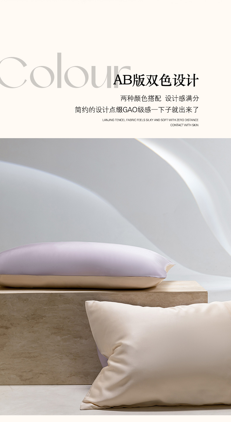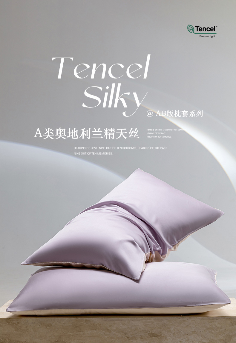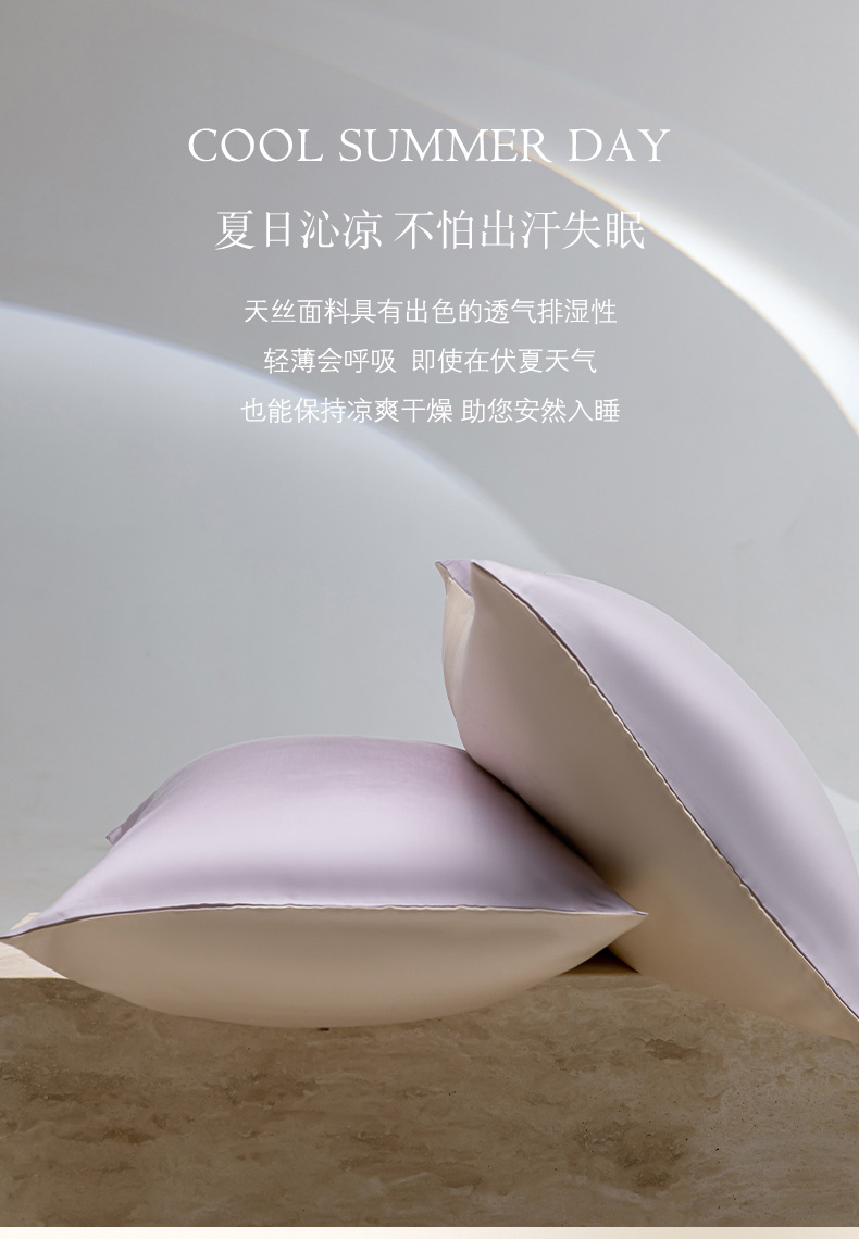 云栖家居 202460支A类兰精天丝系列单品枕套(风格一) 紫灰+香槟