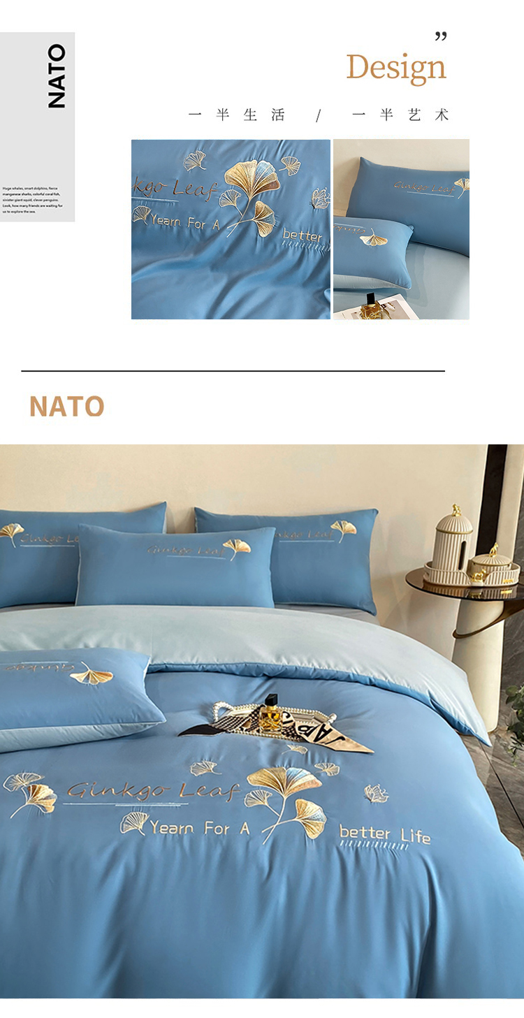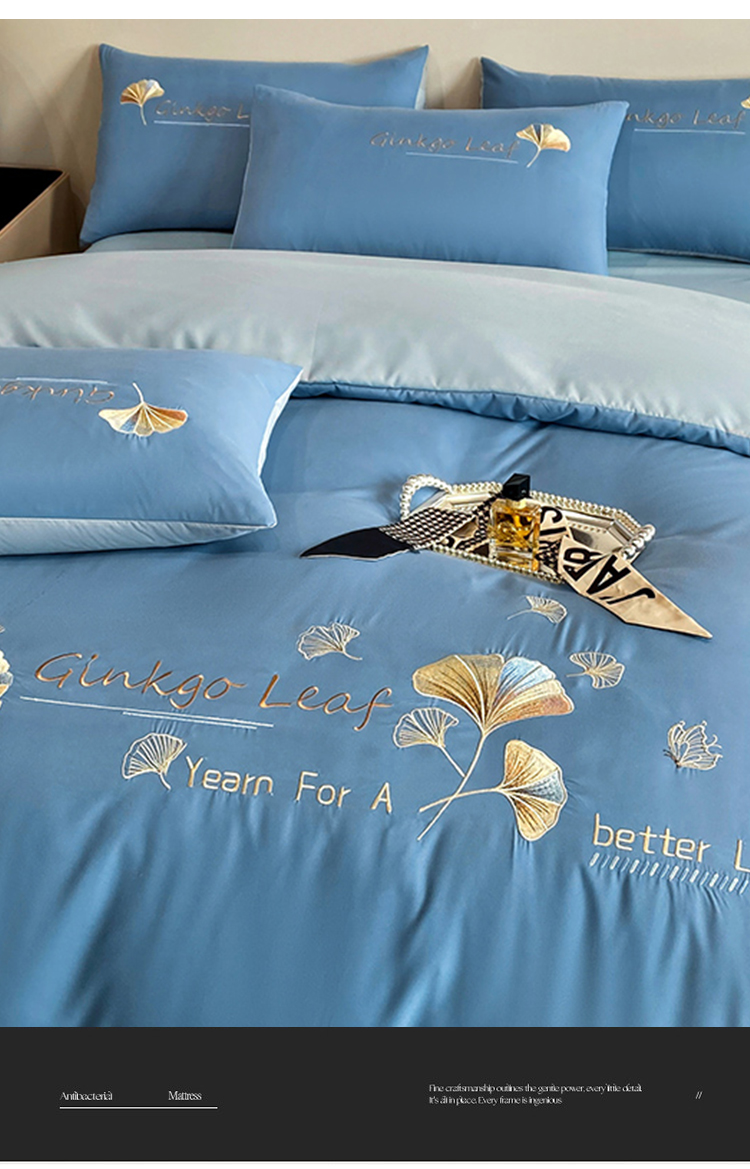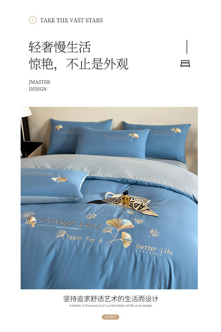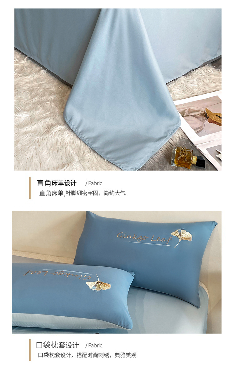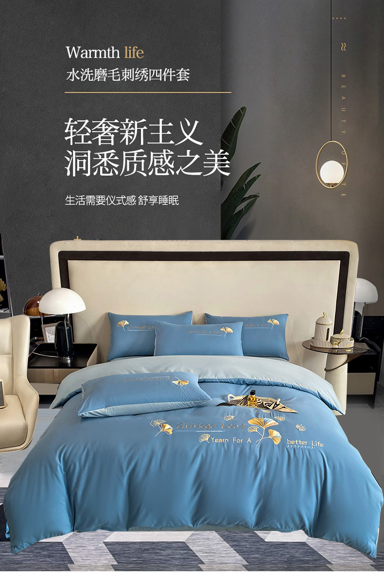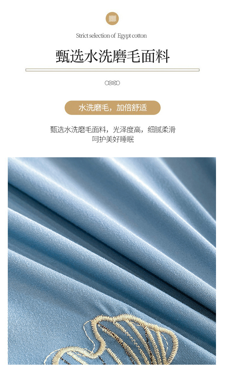 孟鑫 2025新款水洗磨毛刺绣绣花四件套-三生有杏系列 宾利蓝
