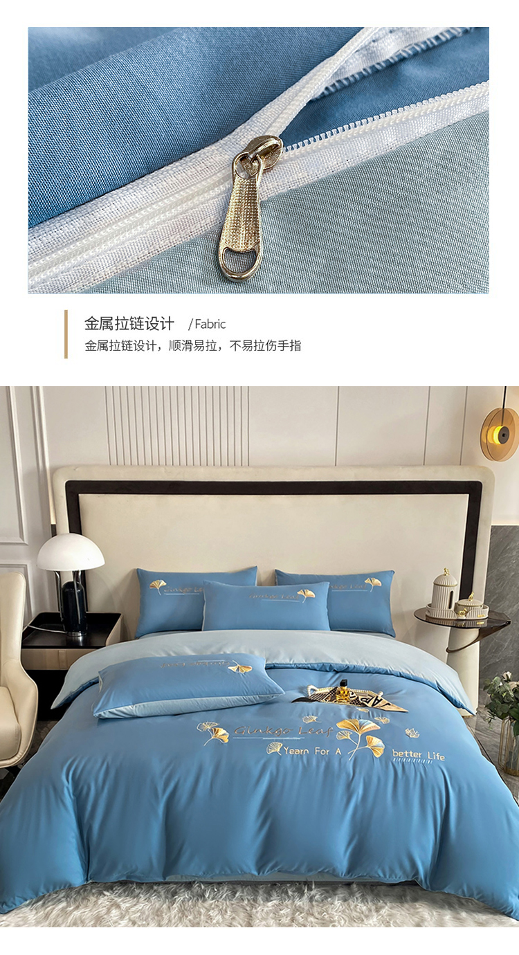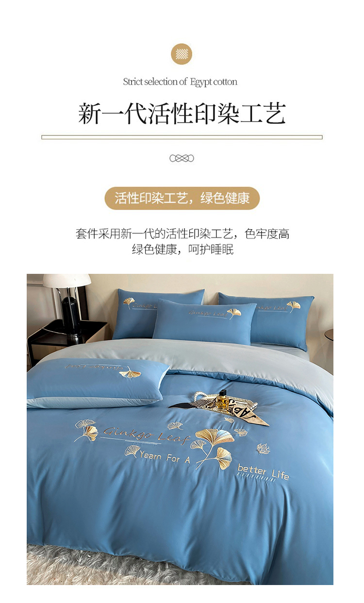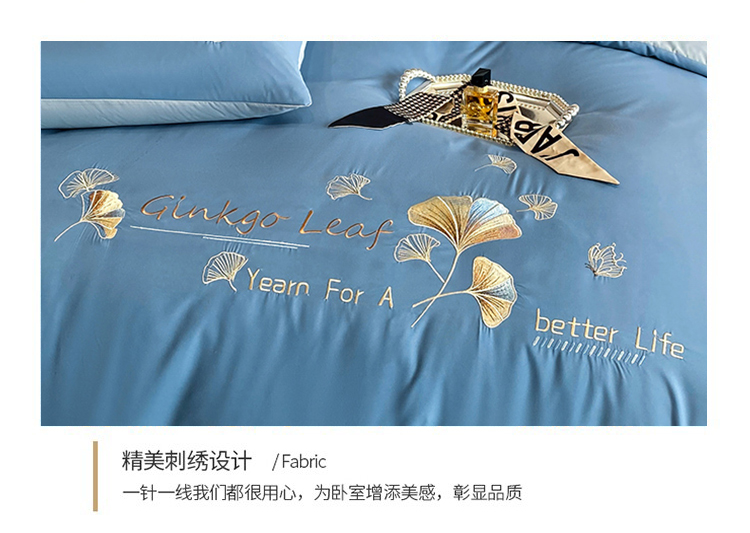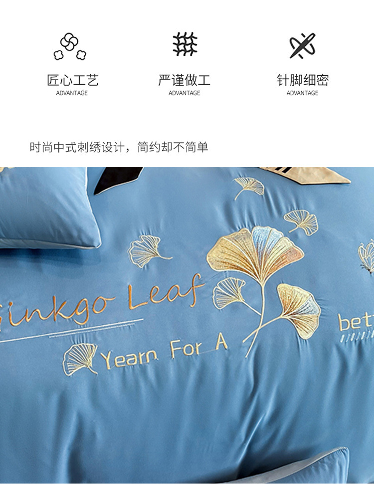 商品名称:孟鑫 2025新款水洗磨毛刺绣绣花四件套-三生有杏系列 宾利蓝