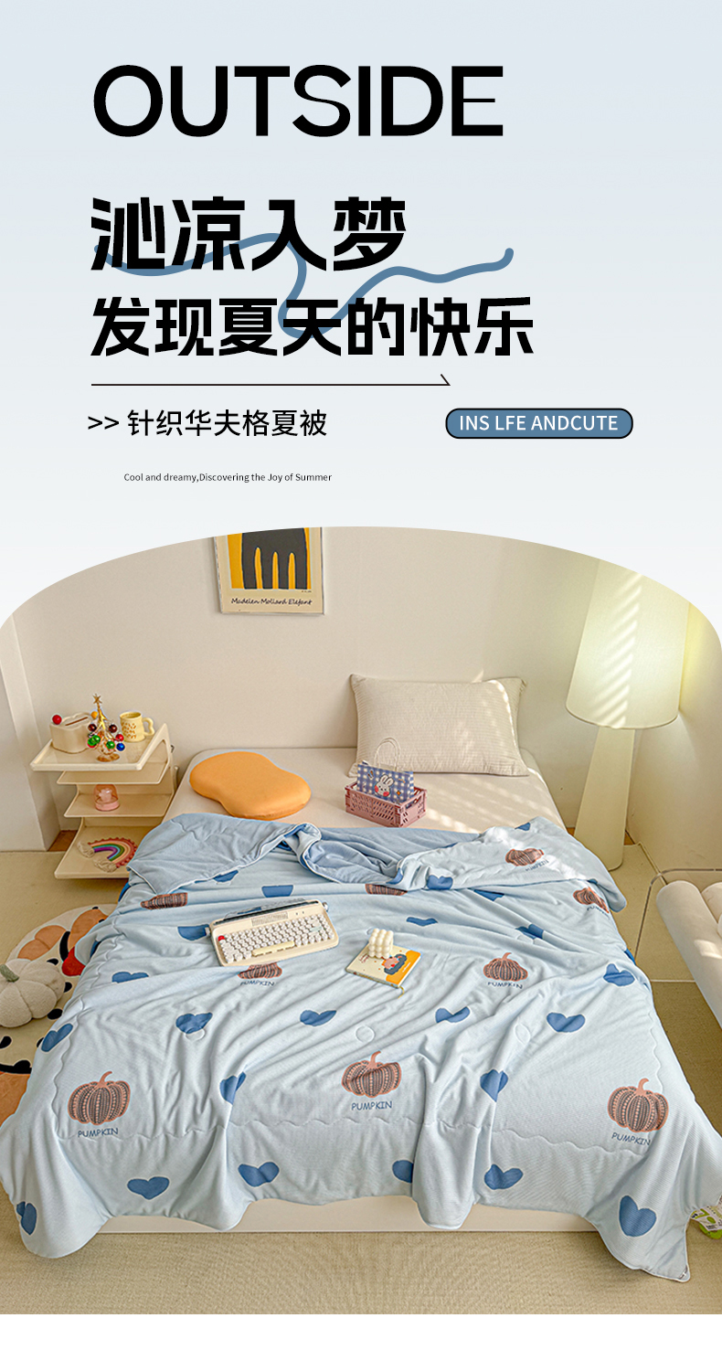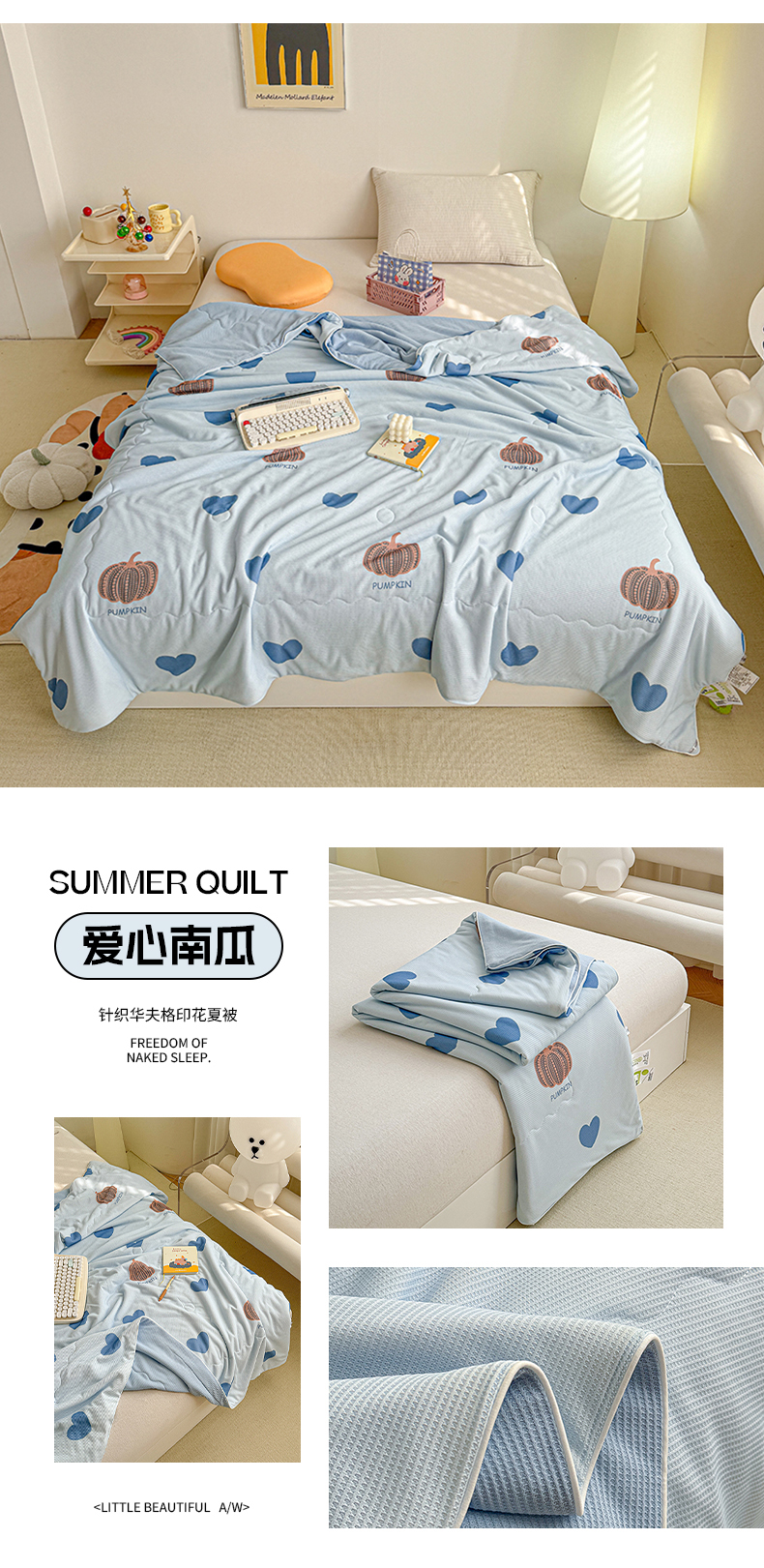 商品名称:源舜家纺 2025新款印花系列针织华夫格夏被 爱心南瓜