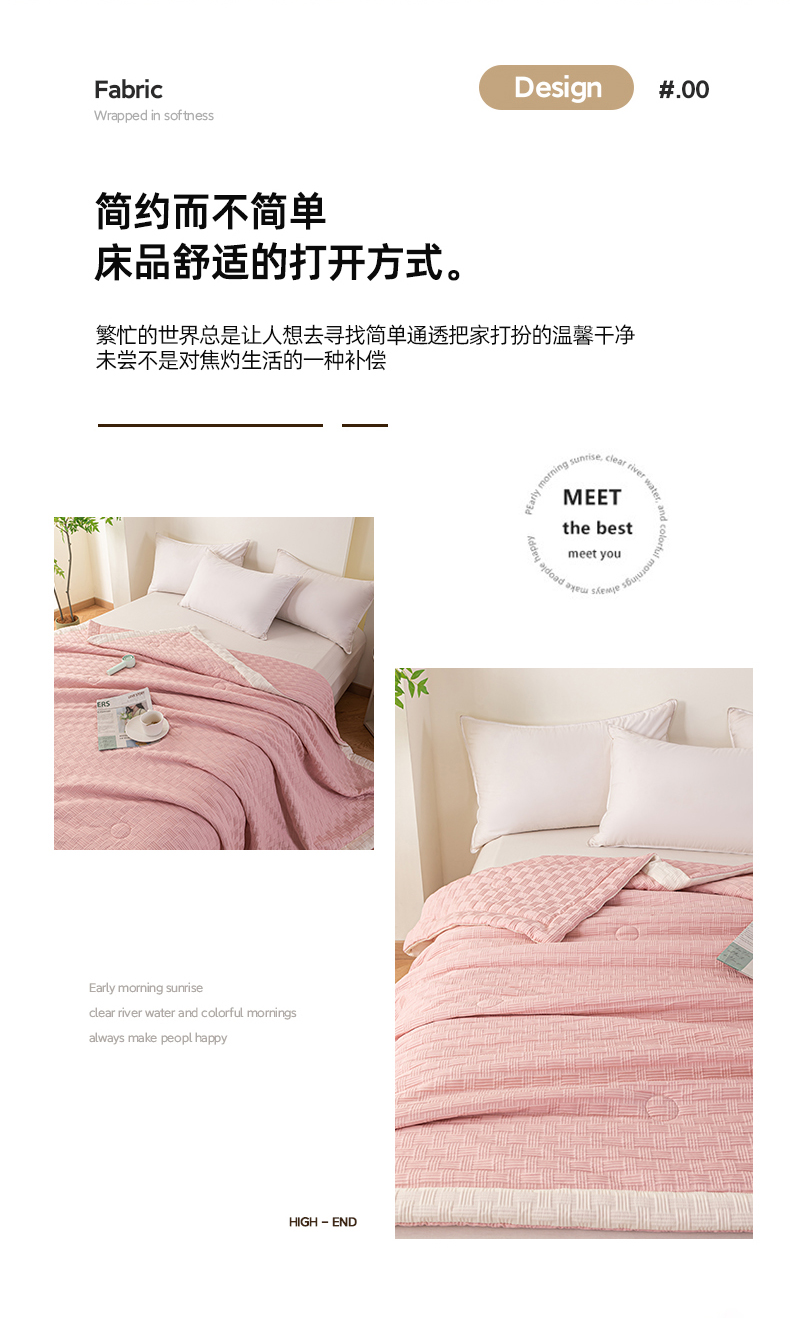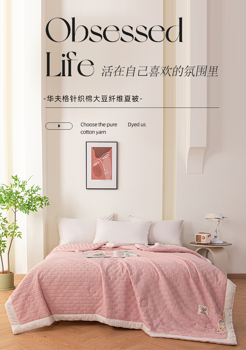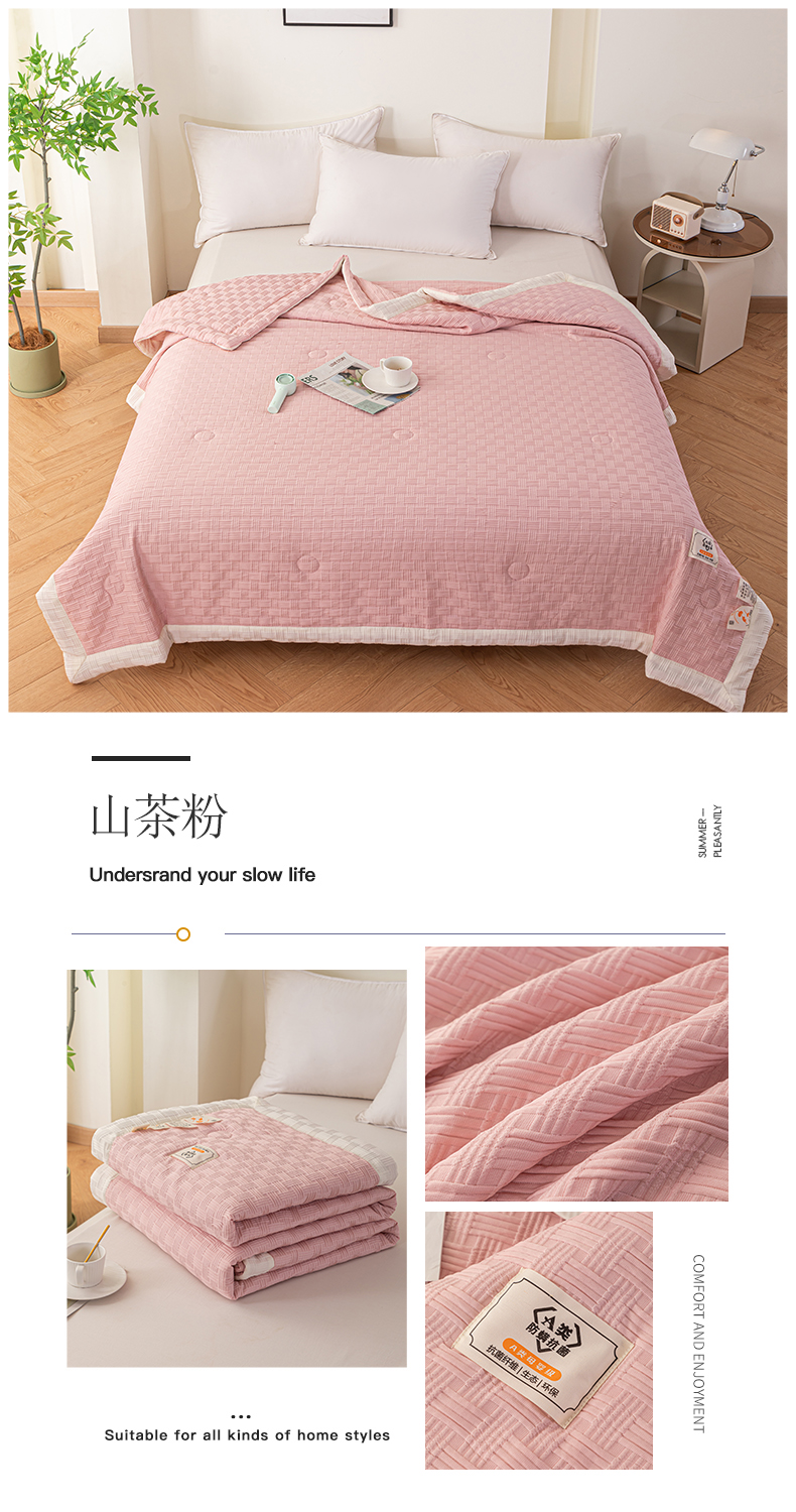 商品名称:江山被业 2025新款华夫格提花针织棉大豆纤维夏被 山茶粉