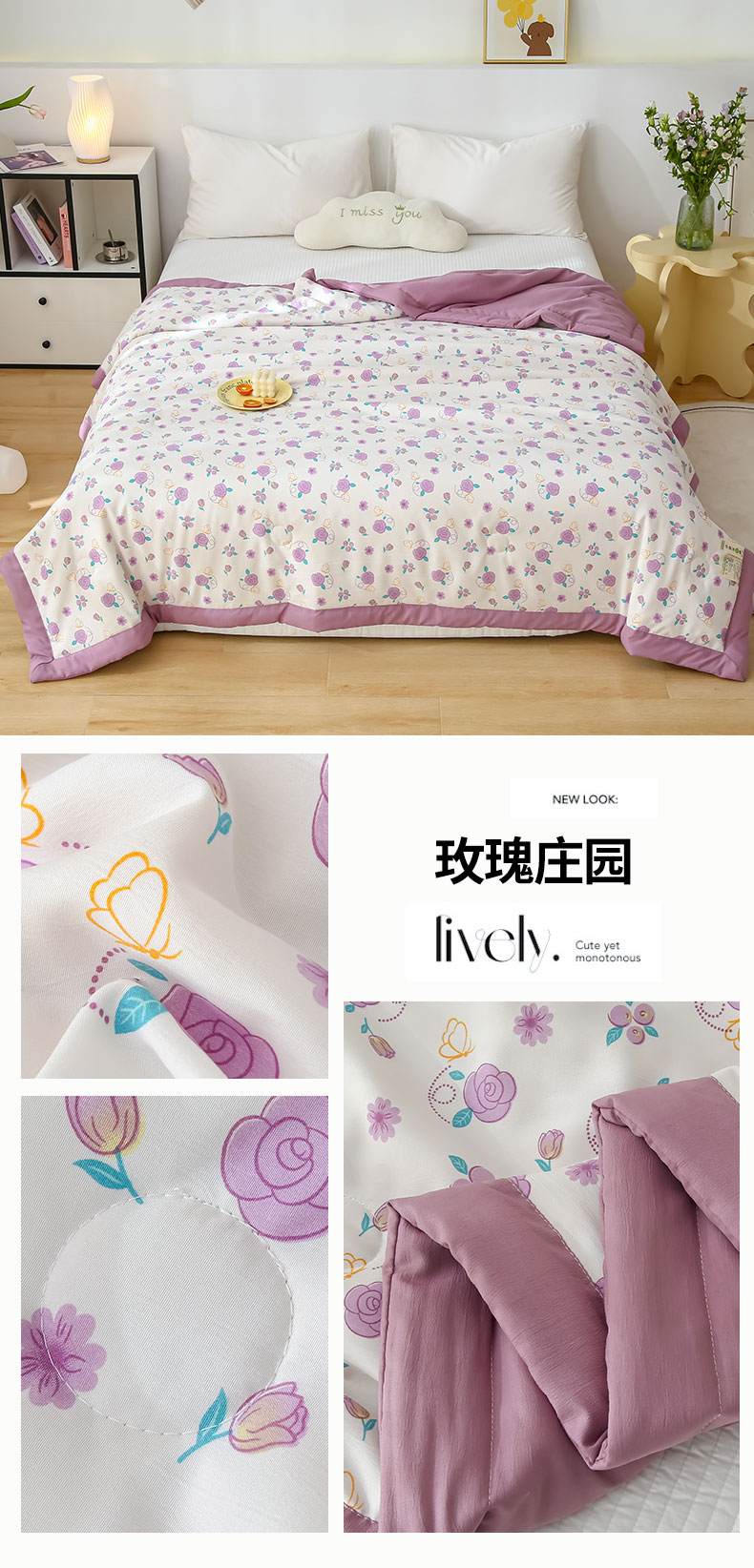 (总)江山被业 2025新款水洗棉麻双层纱大豆夏凉被,小熊嘟嘟,玫瑰庄园, 花园兔,浪漫果实,花漾,甜心草莓, 兰花朵朵