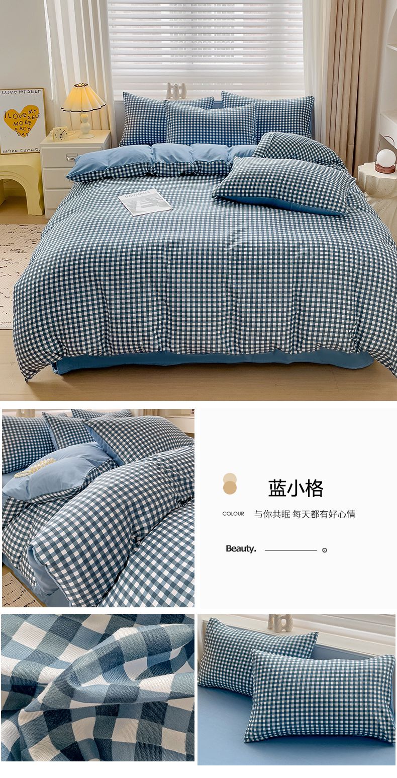 当前位置: 91家纺网 > 商品网购 > 床品套件 > 四件套 > 水洗棉四件套 > 楠沐家纺 2025新款无印风亲肤柔软水洗棉磨毛学生床四件套 蓝小格