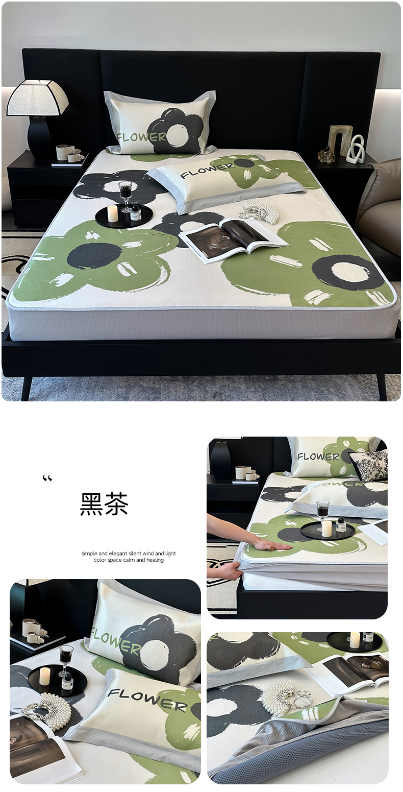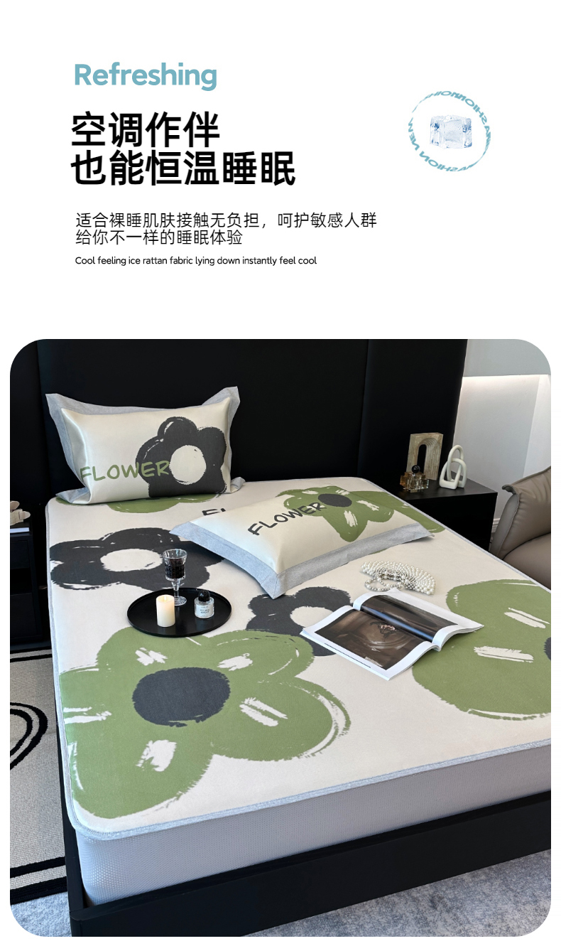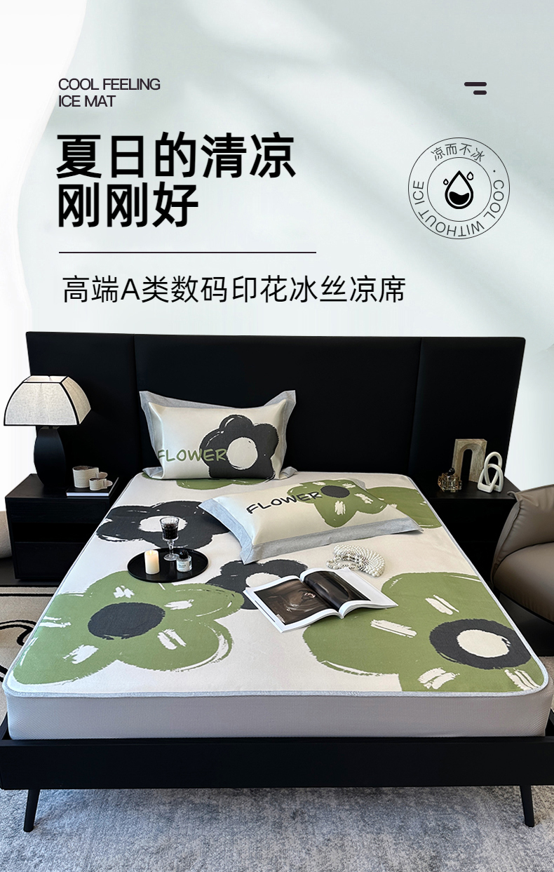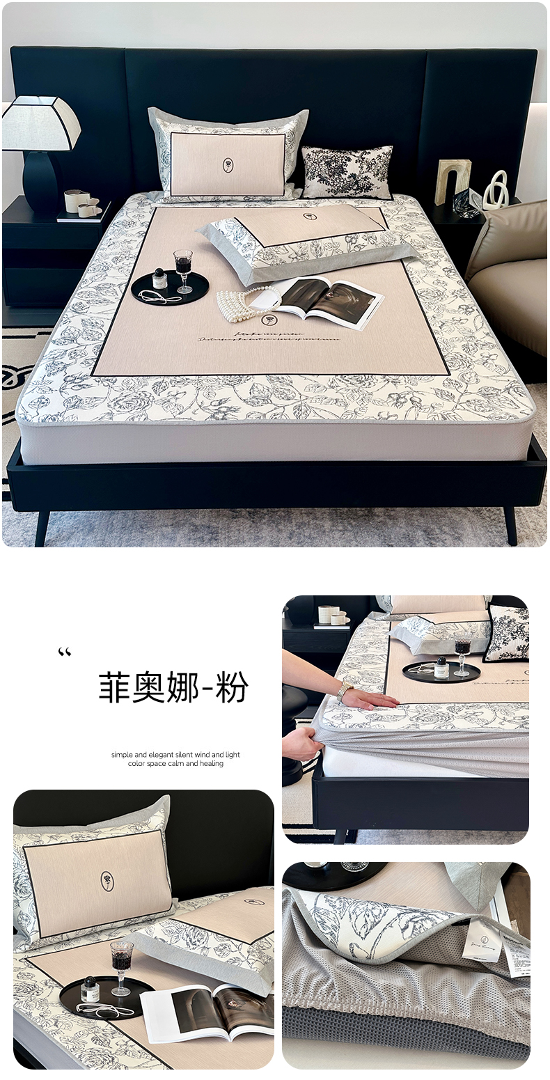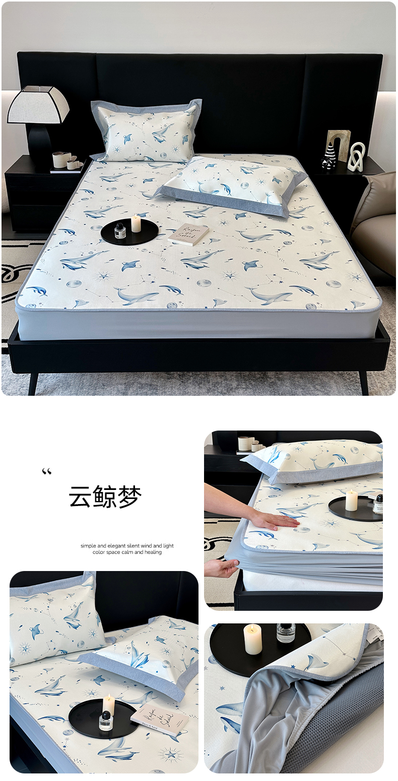商品名称:(总)JUICY 橘滋家纺 2024新款A类数码印花抑菌冰丝床席款床笠款软凉席套件
