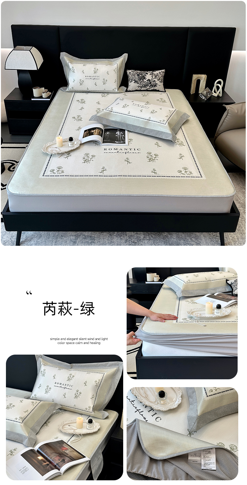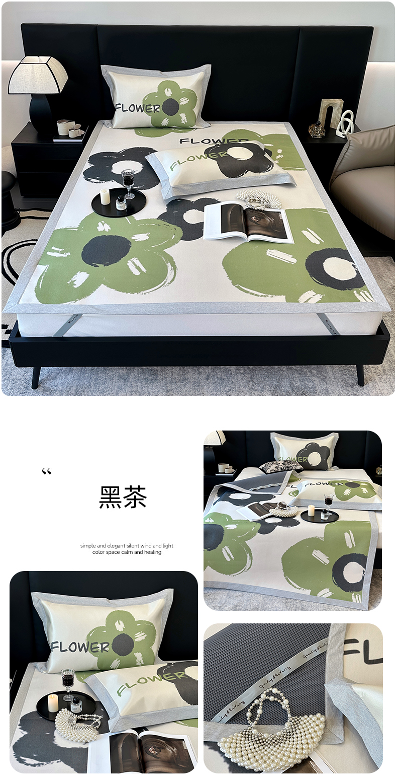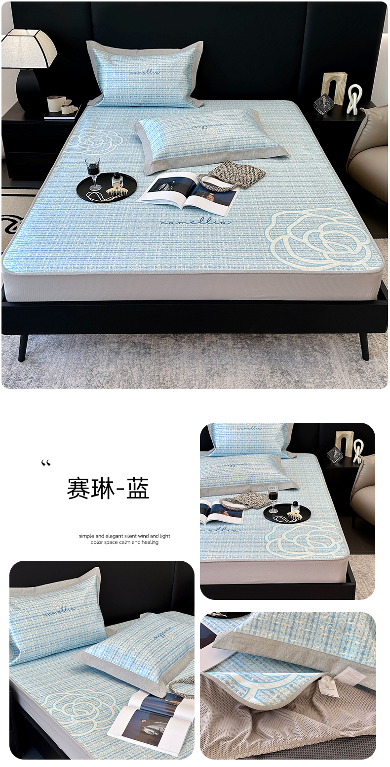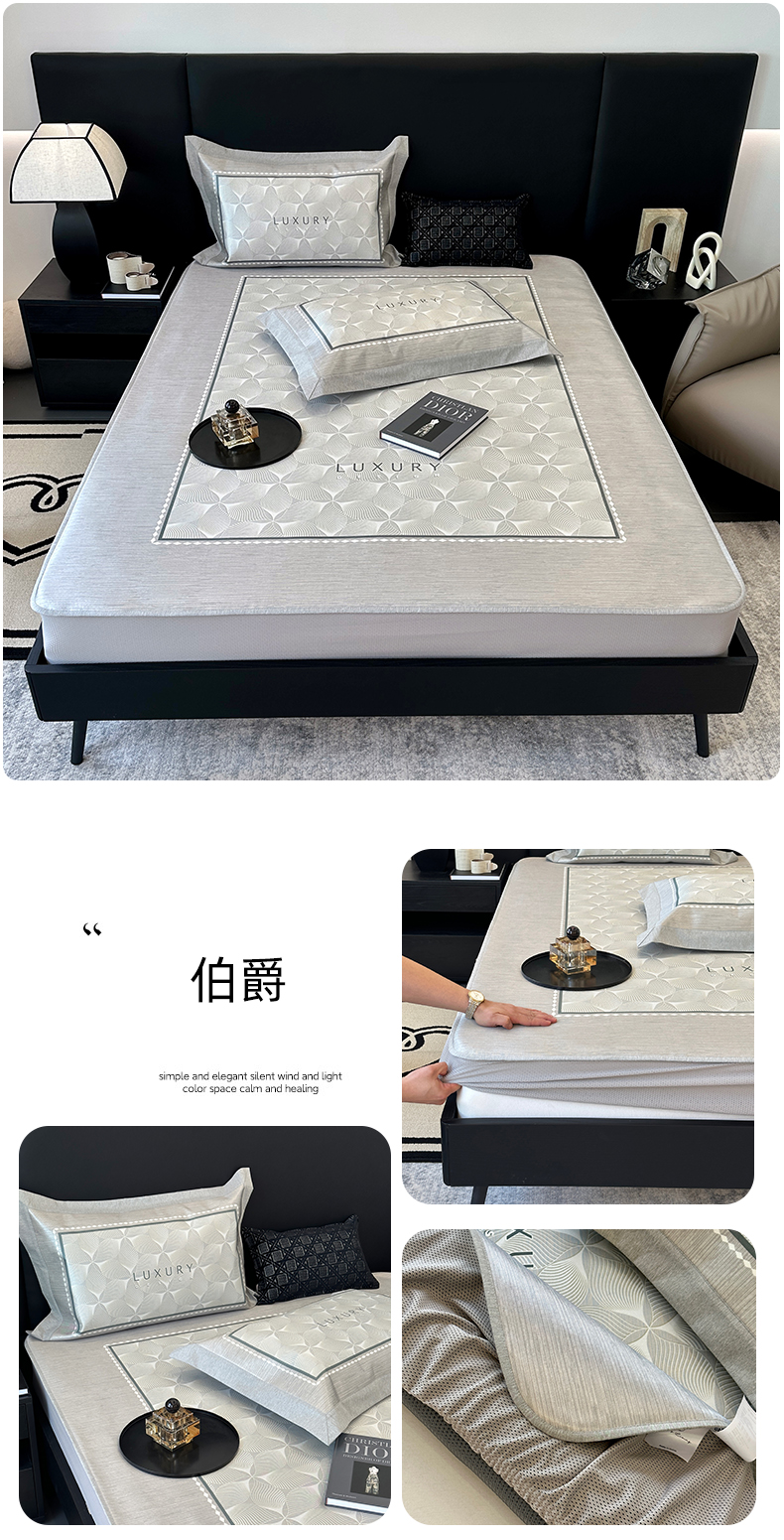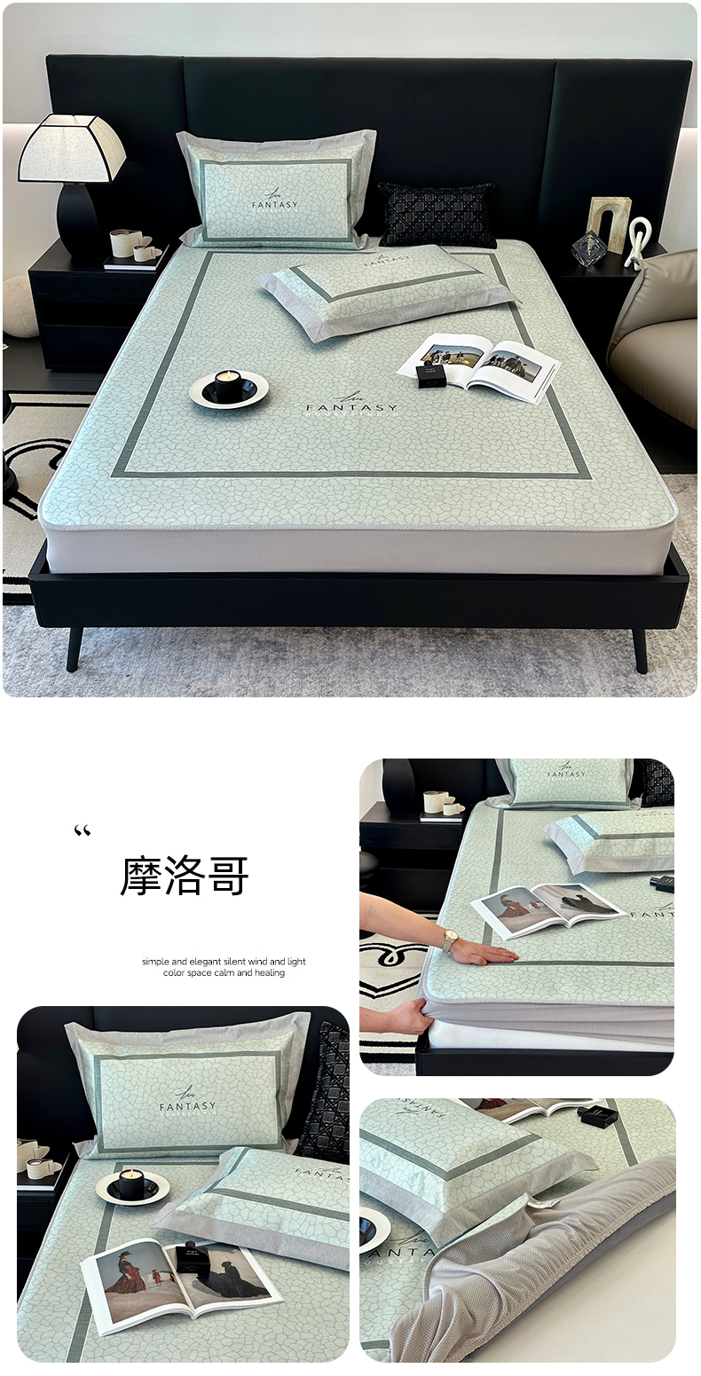 商品名称:(总)JUICY 橘滋家纺 2024新款A类数码印花抑菌冰丝床席款床笠款软凉席套件