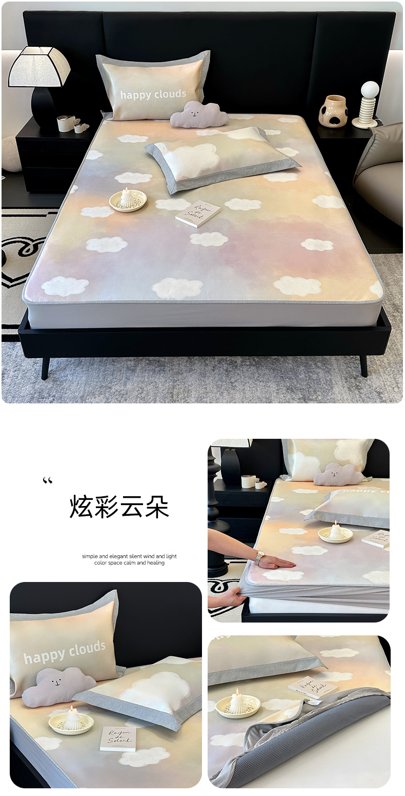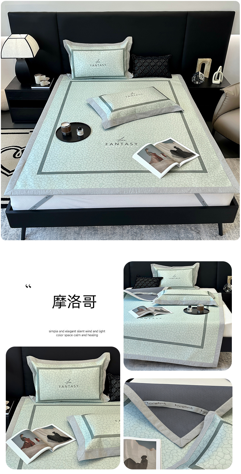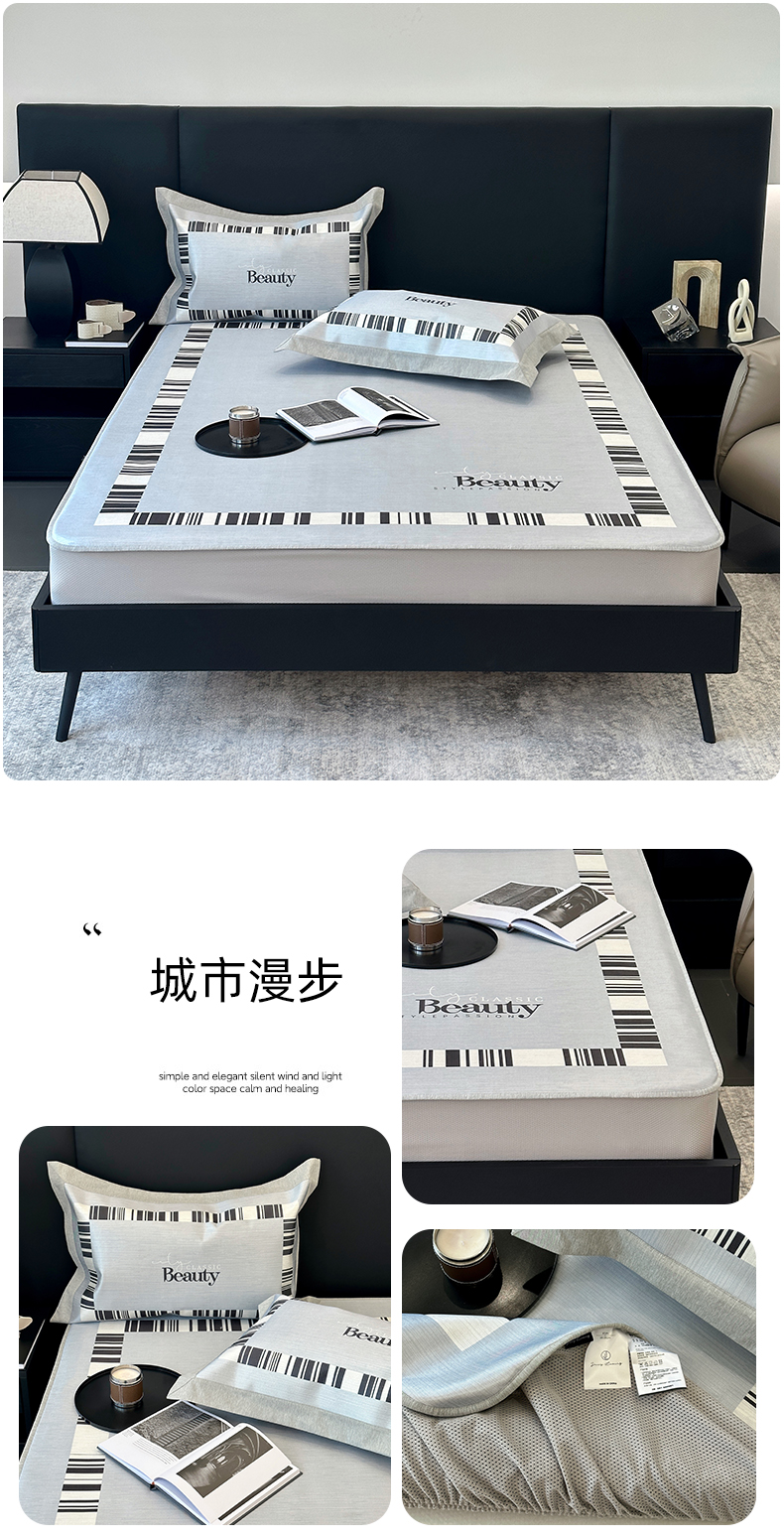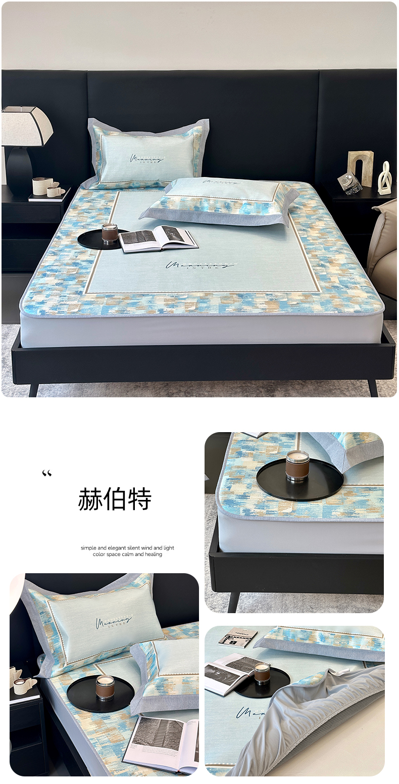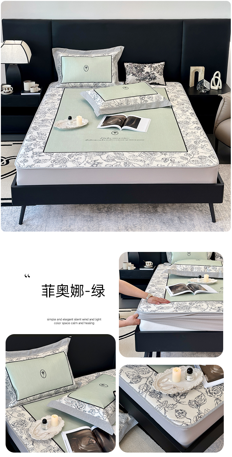 商品名称:(总)JUICY 橘滋家纺 2024新款A类数码印花抑菌冰丝床席款床笠款软凉席套件