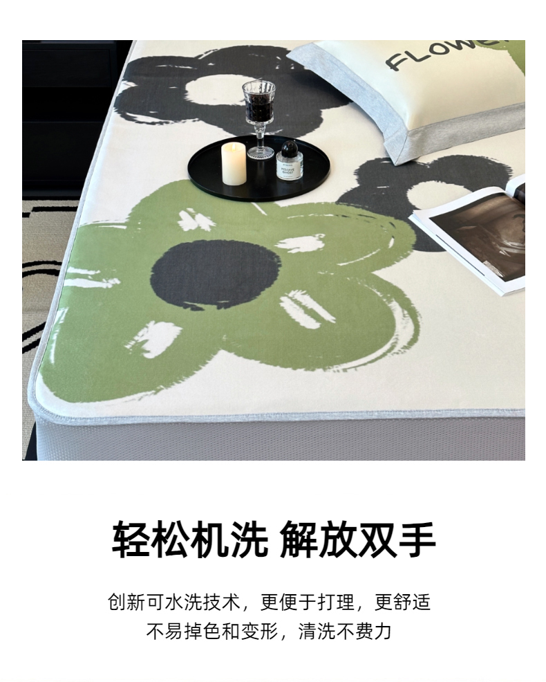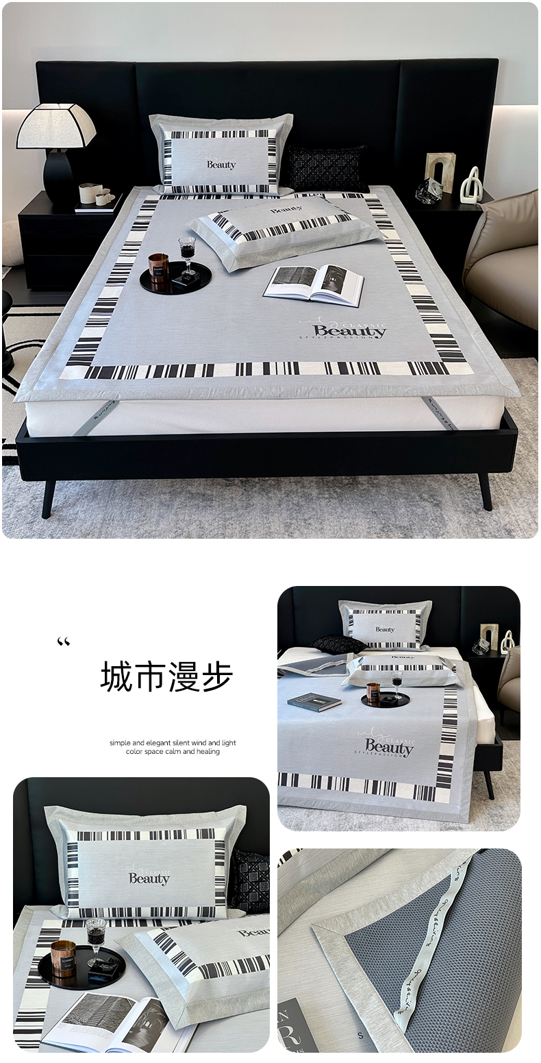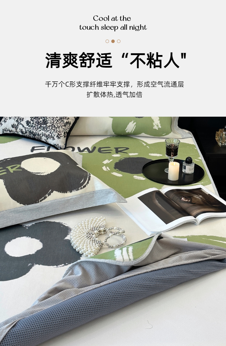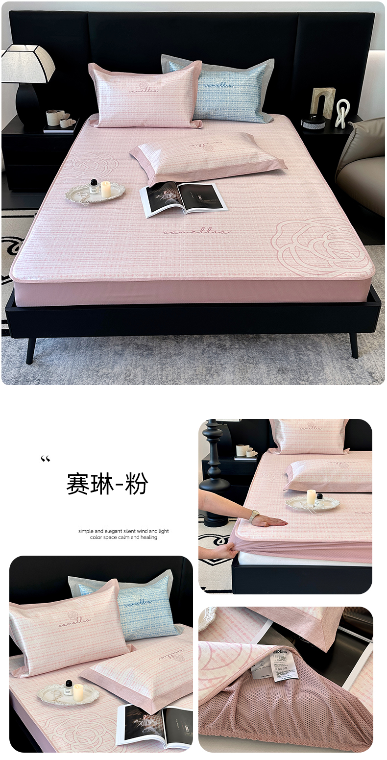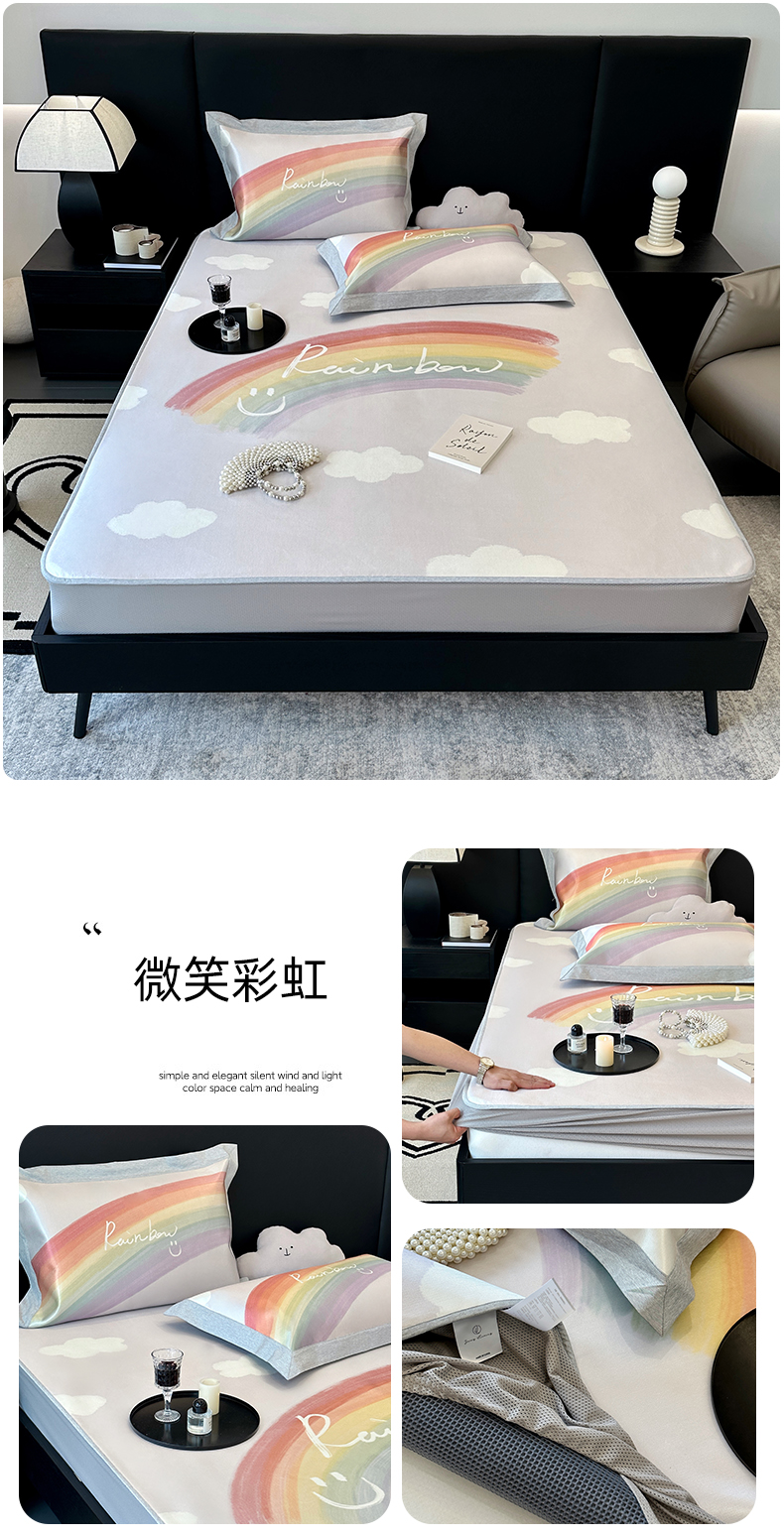 商品名称:(总)JUICY 橘滋家纺 2024新款A类数码印花抑菌冰丝床席款床笠款软凉席套件