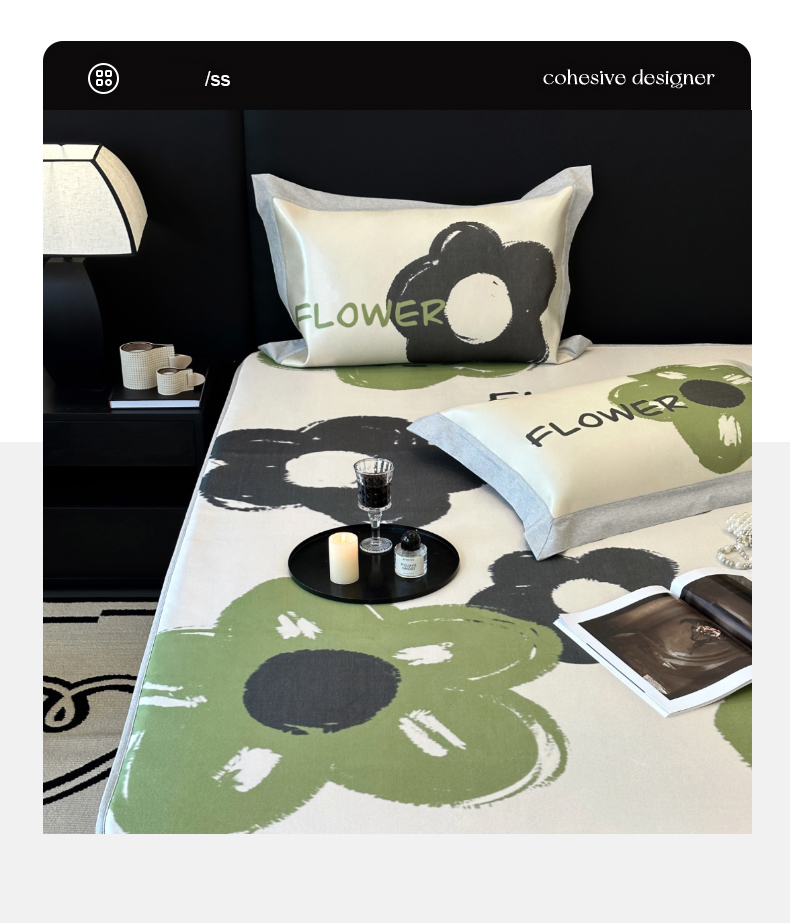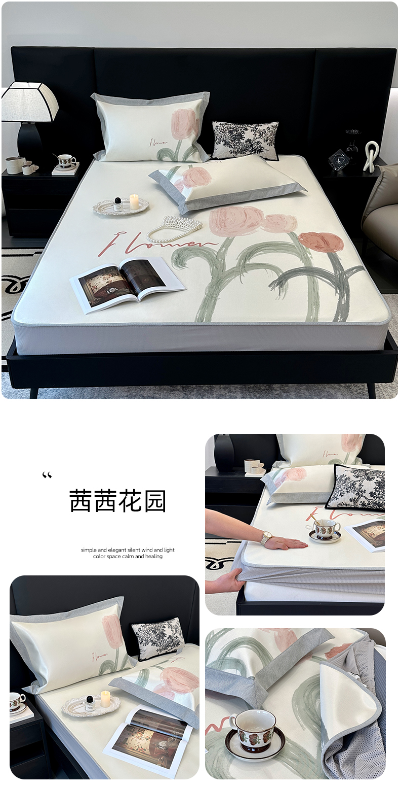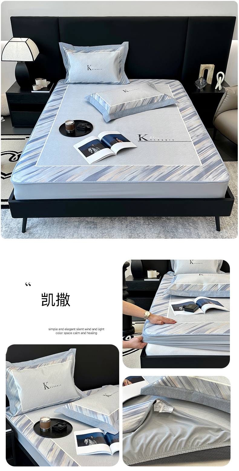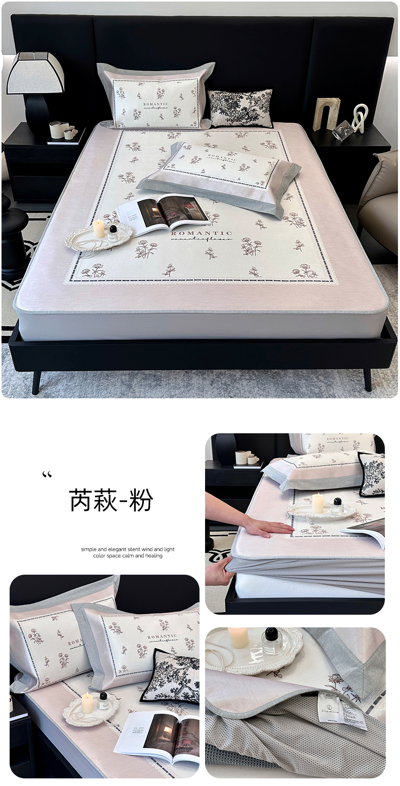 (总)JUICY 橘滋家纺 2024新款A类数码印花抑菌冰丝床席款床笠款软凉席套件