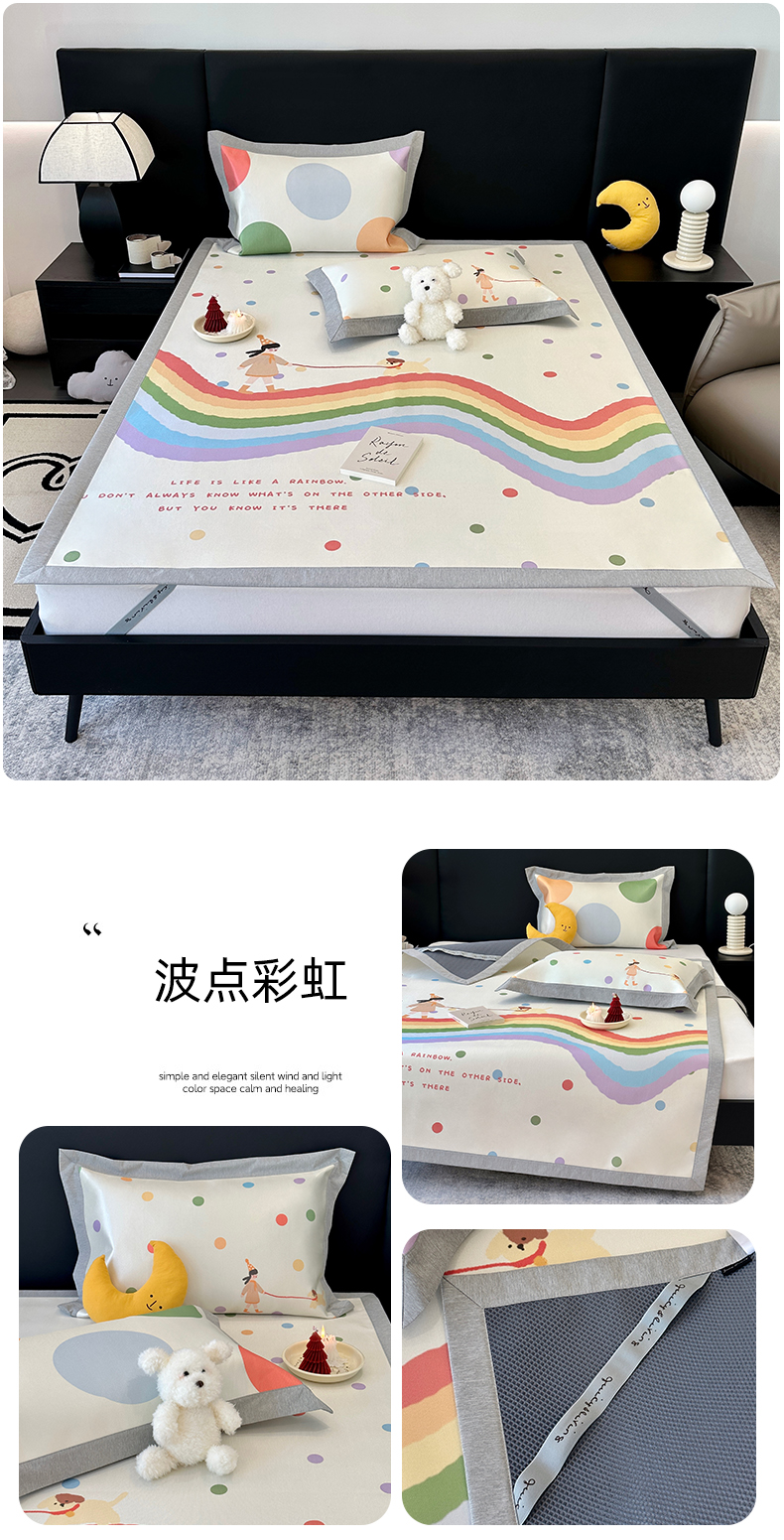 商品名称:JUICY 橘滋家纺 2024新款A类数码印花抑菌冰丝床席款床笠款软凉席套件 波点彩虹(平席款)