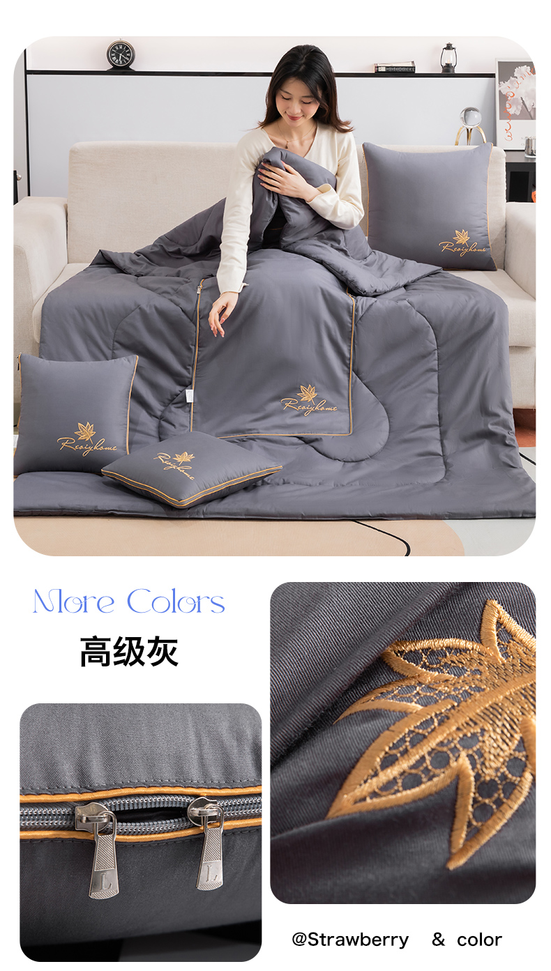 商品名称:吉利家居 2024新款全棉绣花抱枕被(四季款) 高级灰