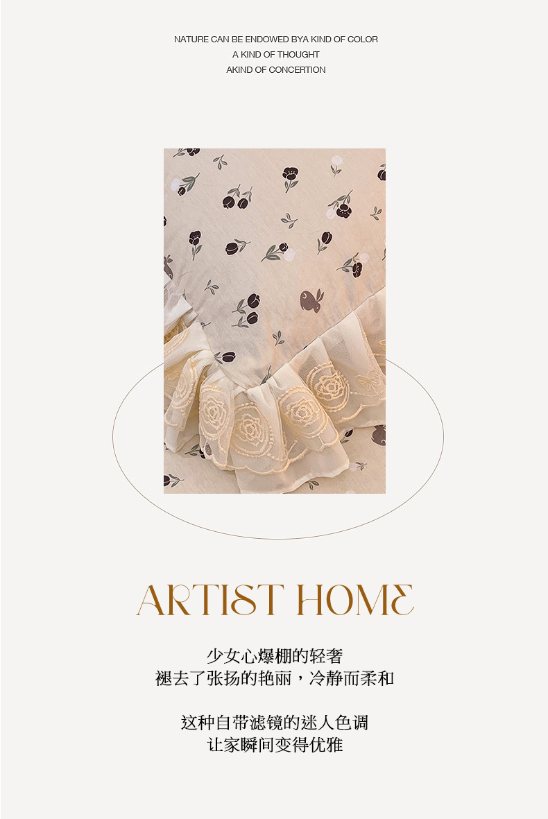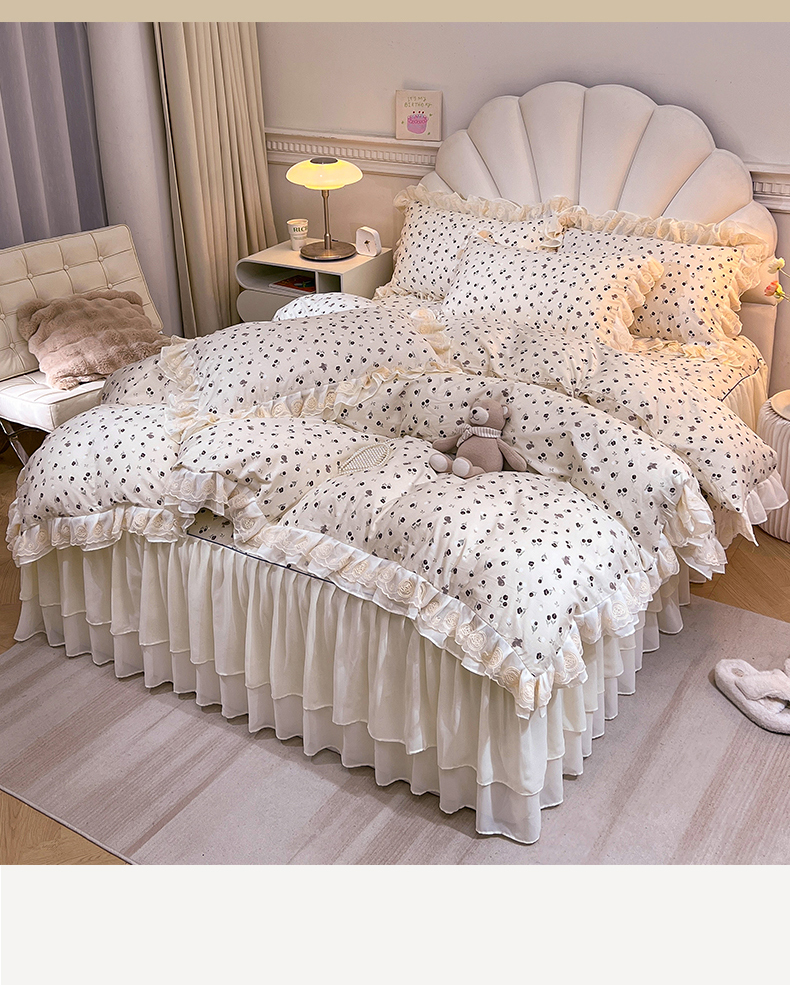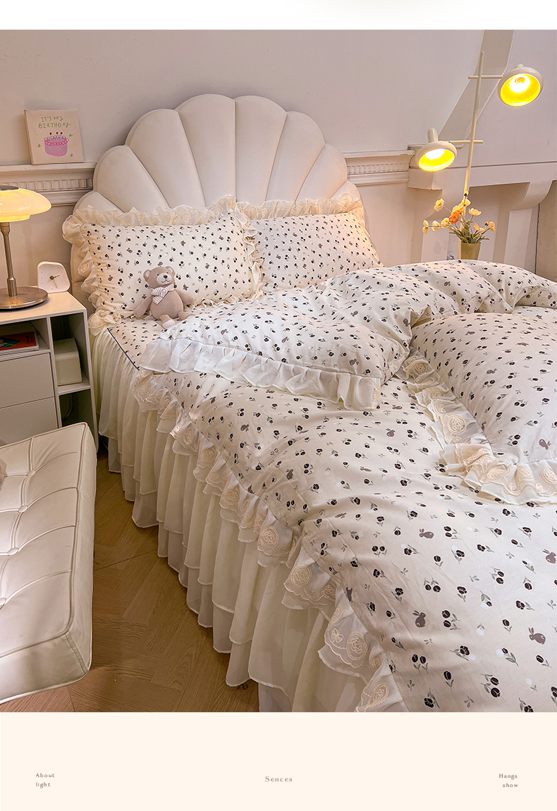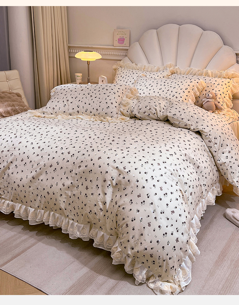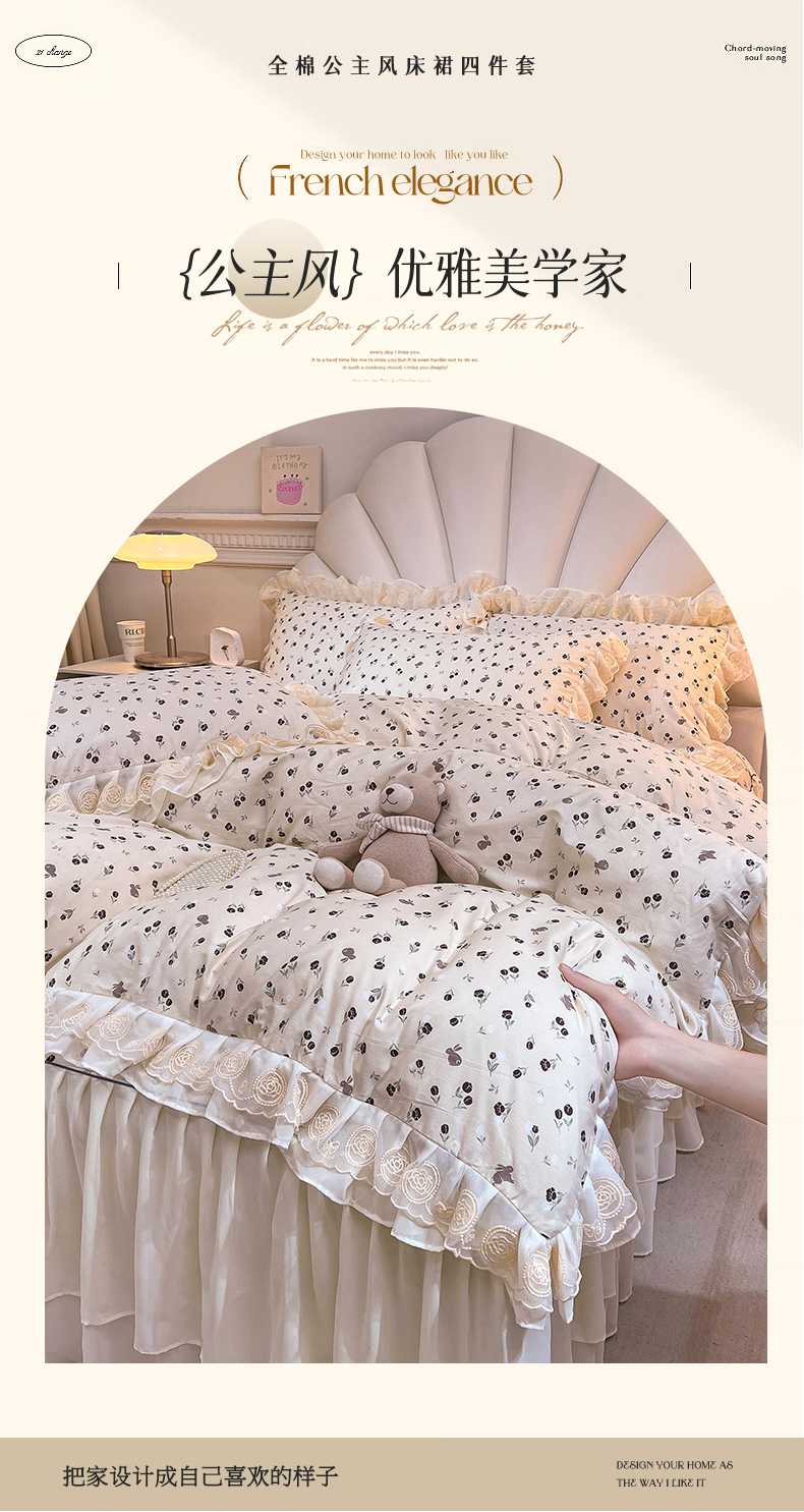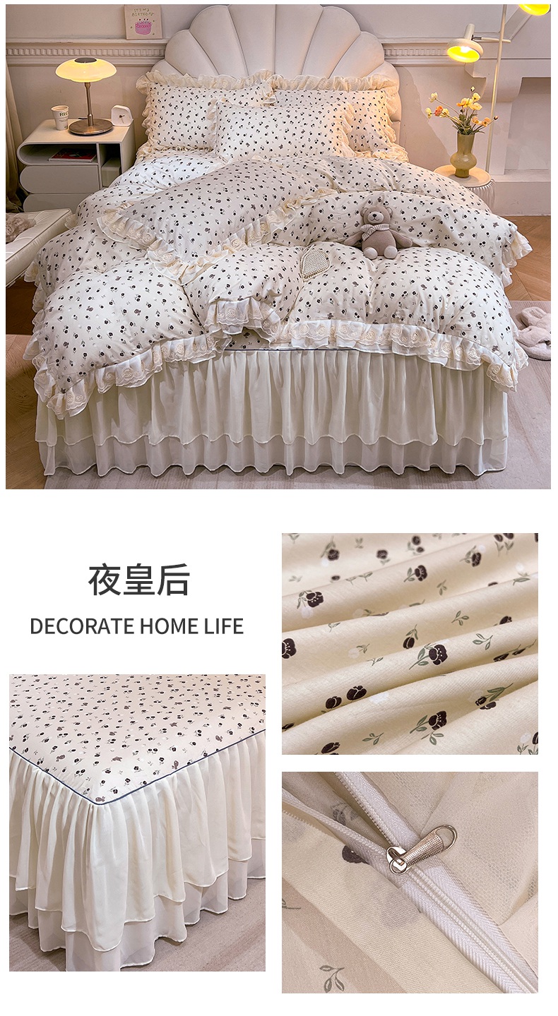 当前位置: 91家纺网 > 商品网购 > 床品套件 > 四件套 > 全棉普通四件套 > 恒爱家纺 2024新款梦幻情缘全棉公主风四件套 夜皇后