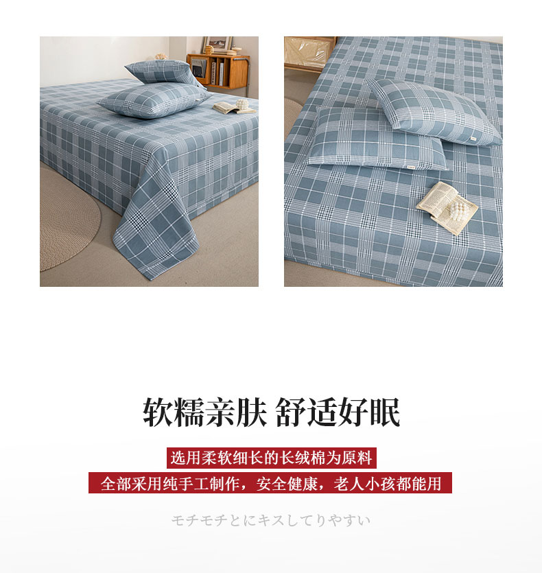 • 91家纺网 家纺一手货源 找家纺 鸣升 新款舒适透气100%全棉老粗布床单 蓝条格