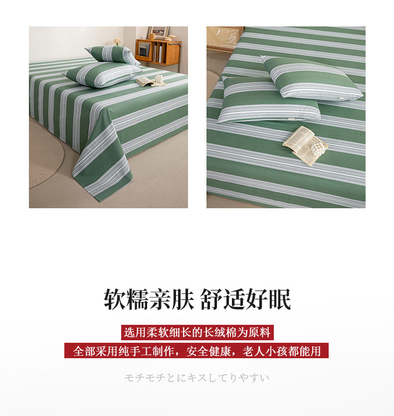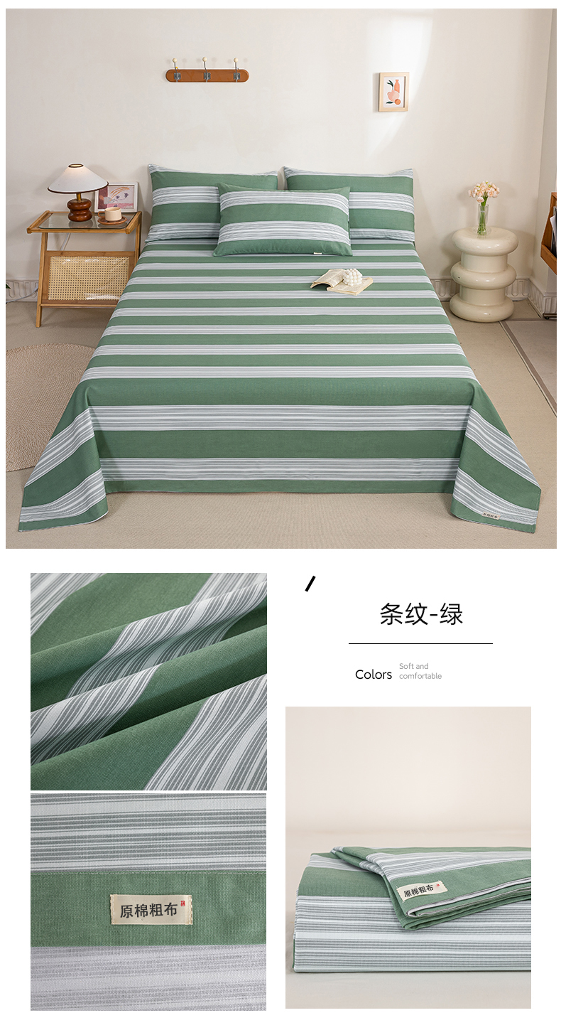 鸣升 新款舒适透气100%全棉老粗布床单 条纹绿