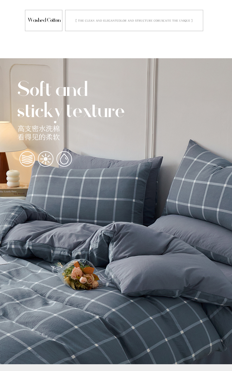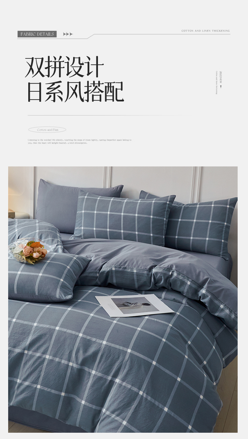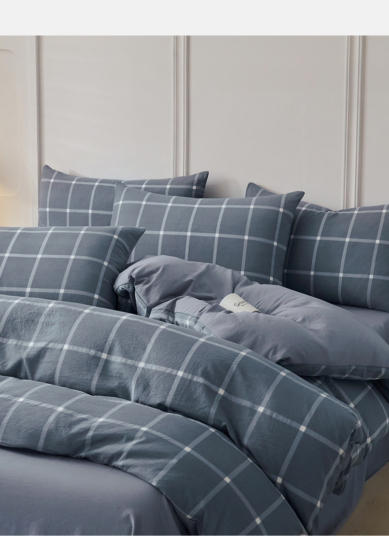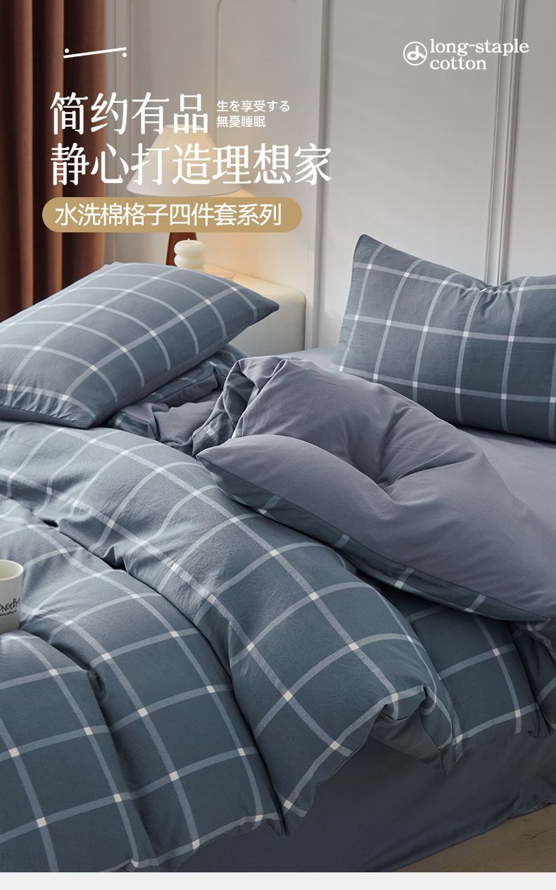当前位置: 91家纺网 > 商品网购 > 床品套件 > 四件套 > 水洗棉四件套 > 盛秋家纺 2025新款水洗棉格子系列四件套 灰大格+蓝灰