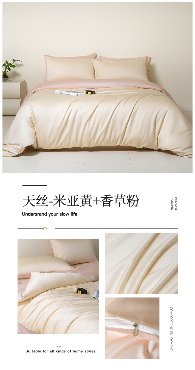 当前位置: 91家纺网 > 商品网购 > 床品套件 > 四件套 > 莱赛尔四件套 > 慕色家纺 2024新款高支莱赛尔天丝纯色拼色四件套 天丝-米亚黄+香草粉