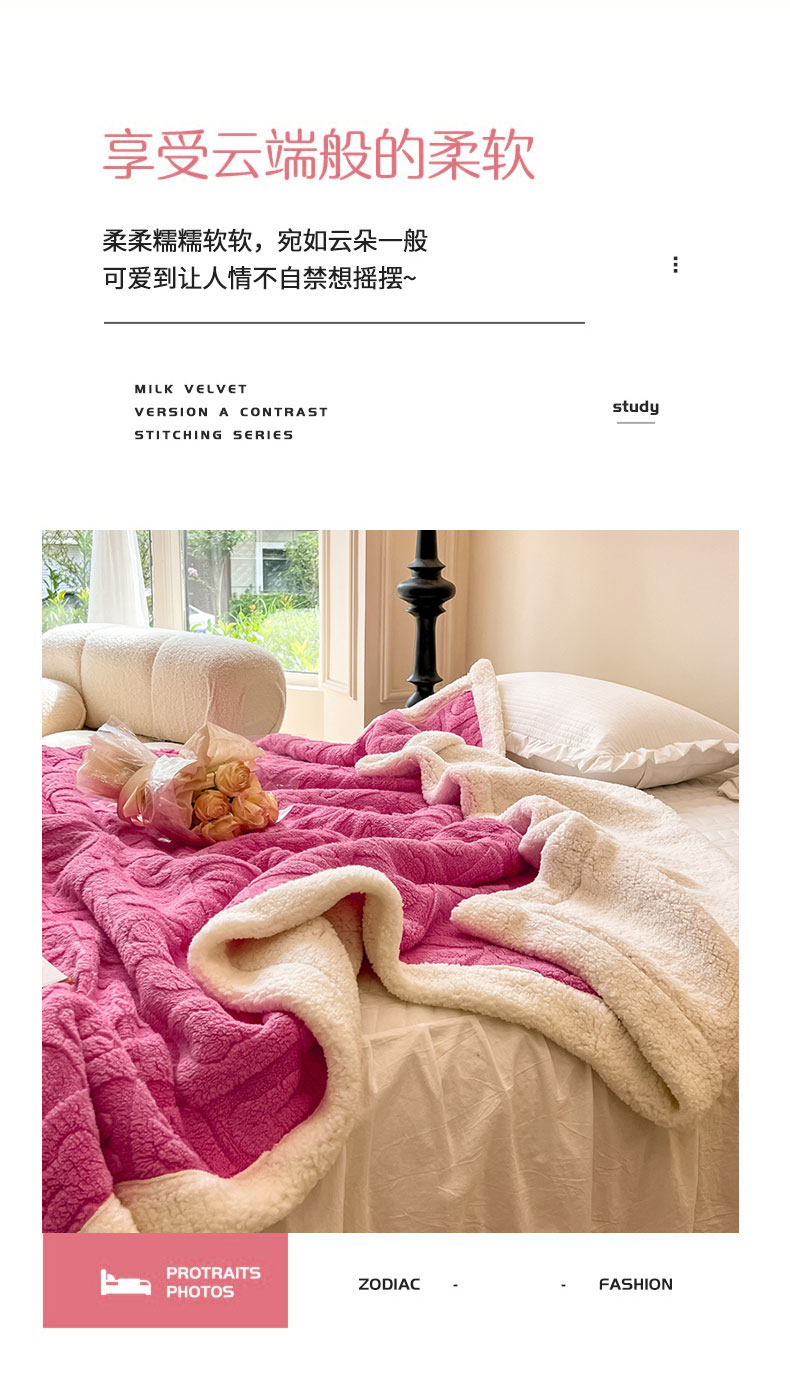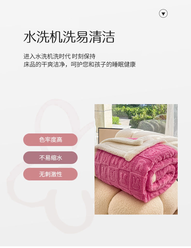 商品名称:呗旺鹿 2024新款多巴胺双面塔肤绒高克重盖毯(特价款) 果酱兔