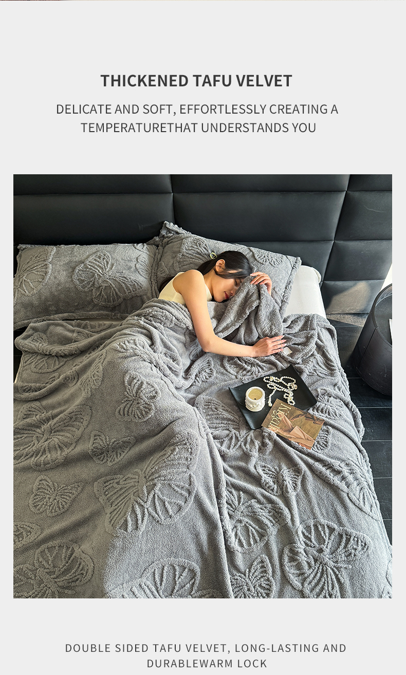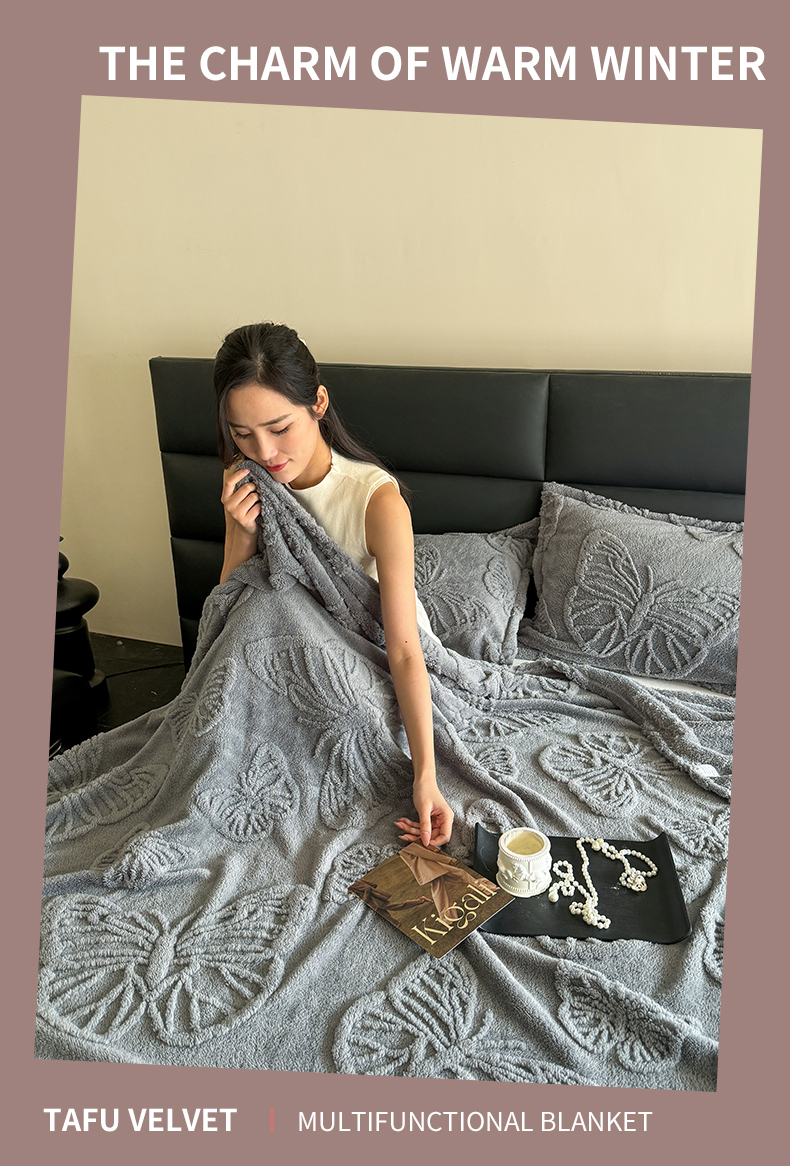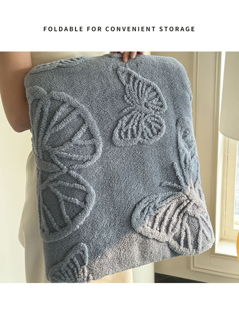 2025款塔芙绒蝴蝶提花毛毯 纯色多功能休闲盖毯 爆款花型 电商/直播/外贸/跨境专供 蝴蝶蓝灰
