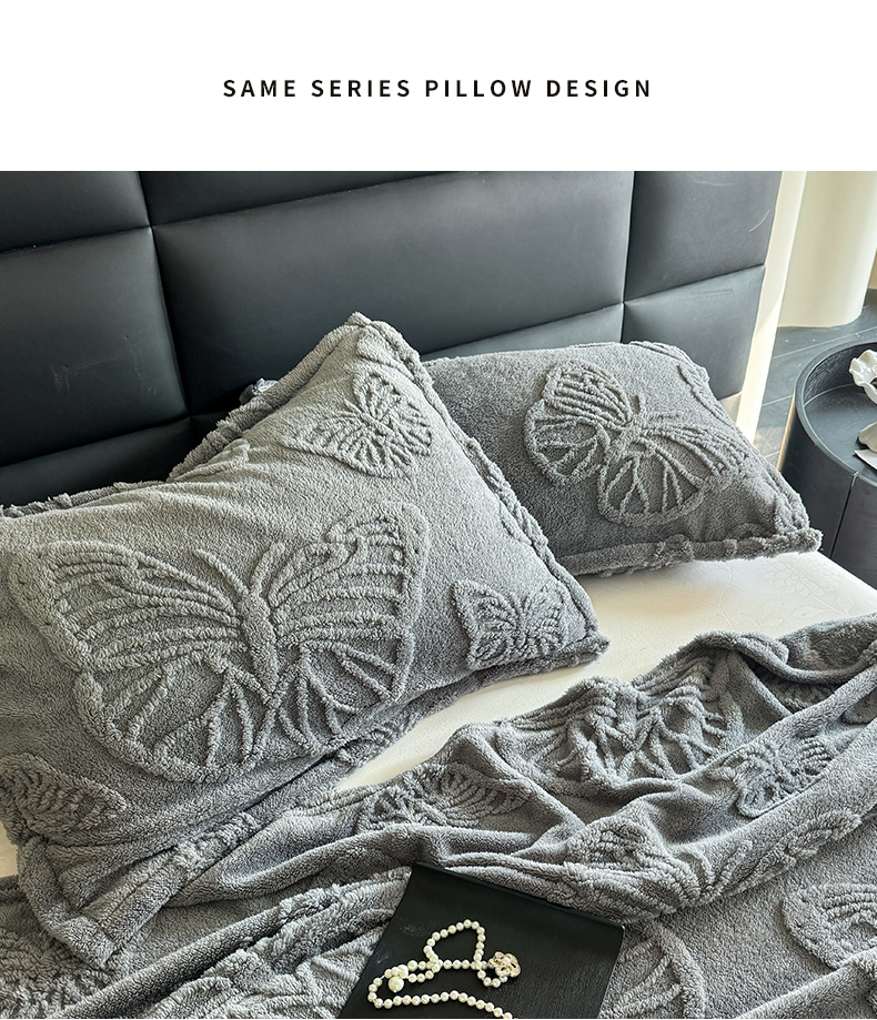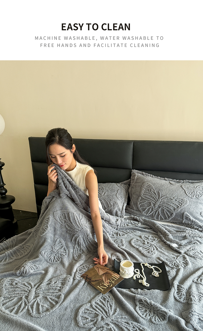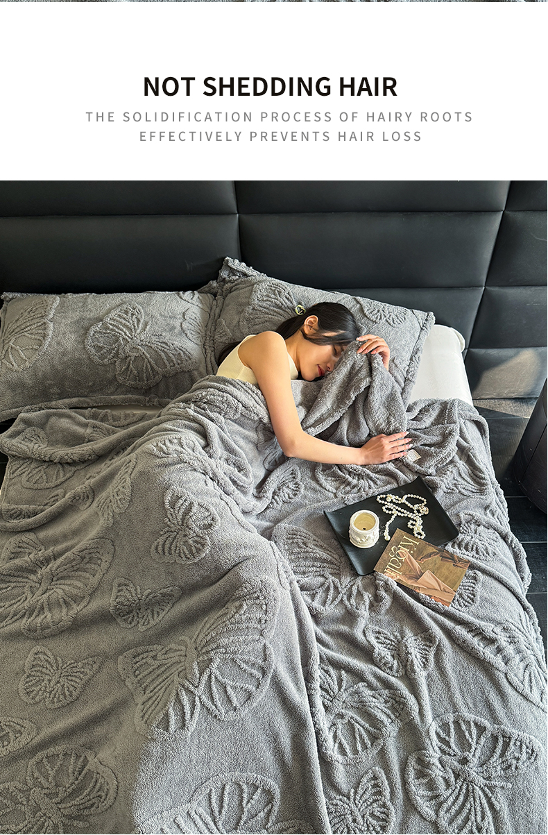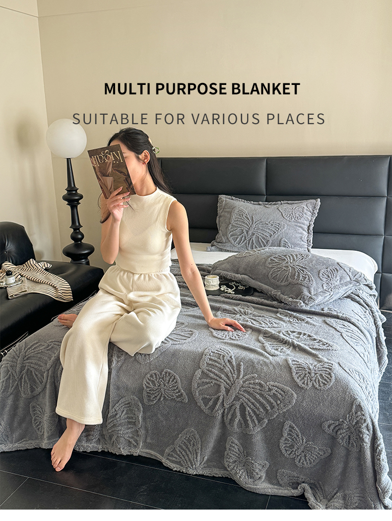 商品名称:2025款塔芙绒蝴蝶提花毛毯 纯色多功能休闲盖毯 爆款花型 电商/直播/外贸/跨境专供 蝴蝶蓝灰