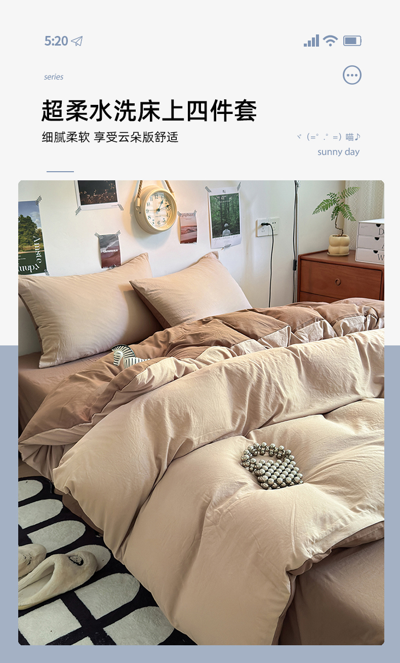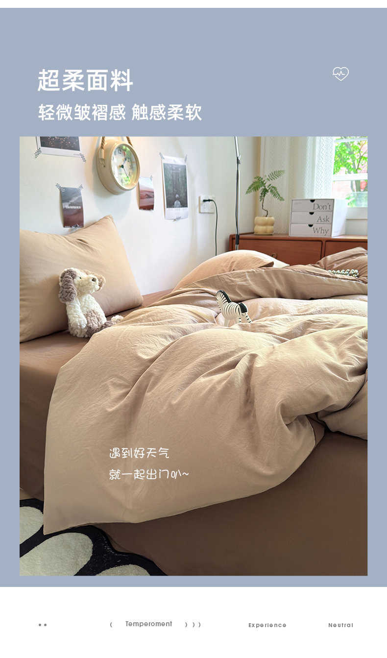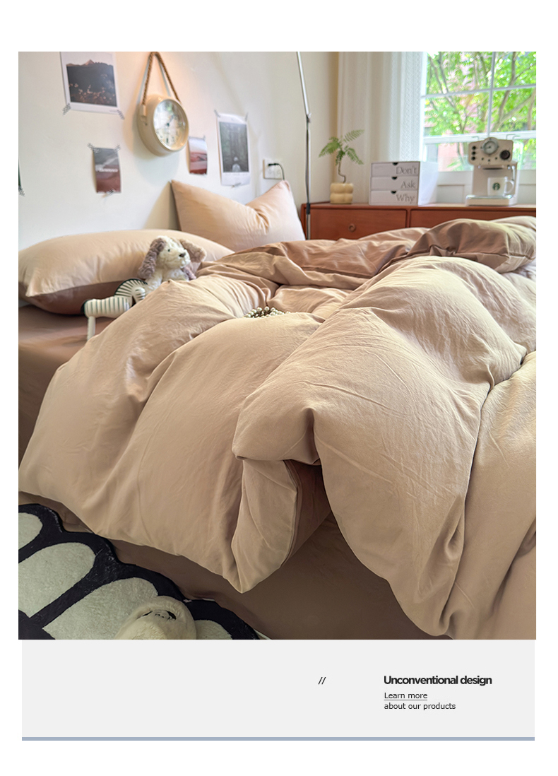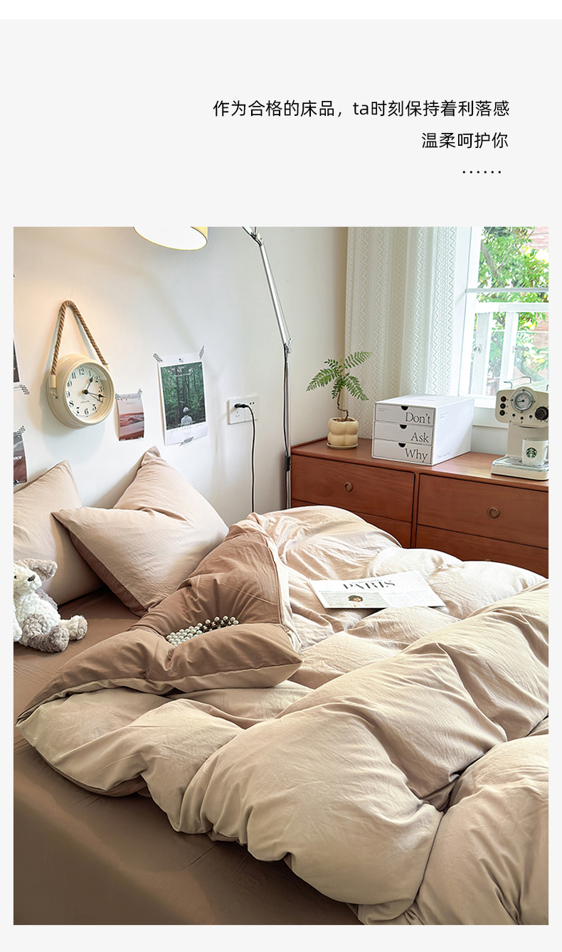 当前位置: 91家纺网 > 商品网购 > 床品套件 > 四件套 > 水洗棉四件套 > 沐芷 2024新款超柔105g纯色水洗棉四件套-柔雅系列 柔雅-奶茶棕咖
