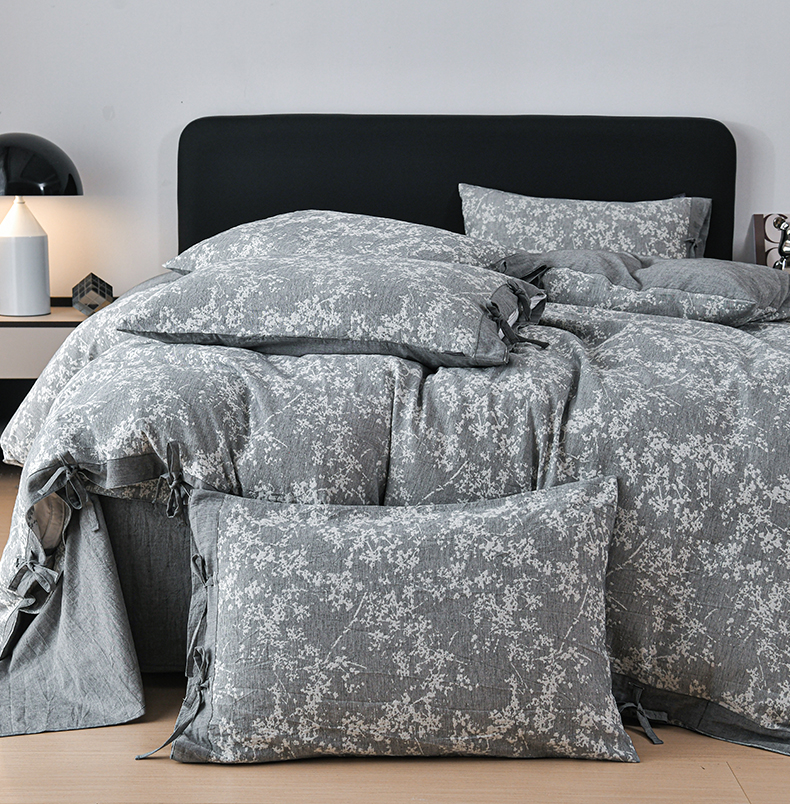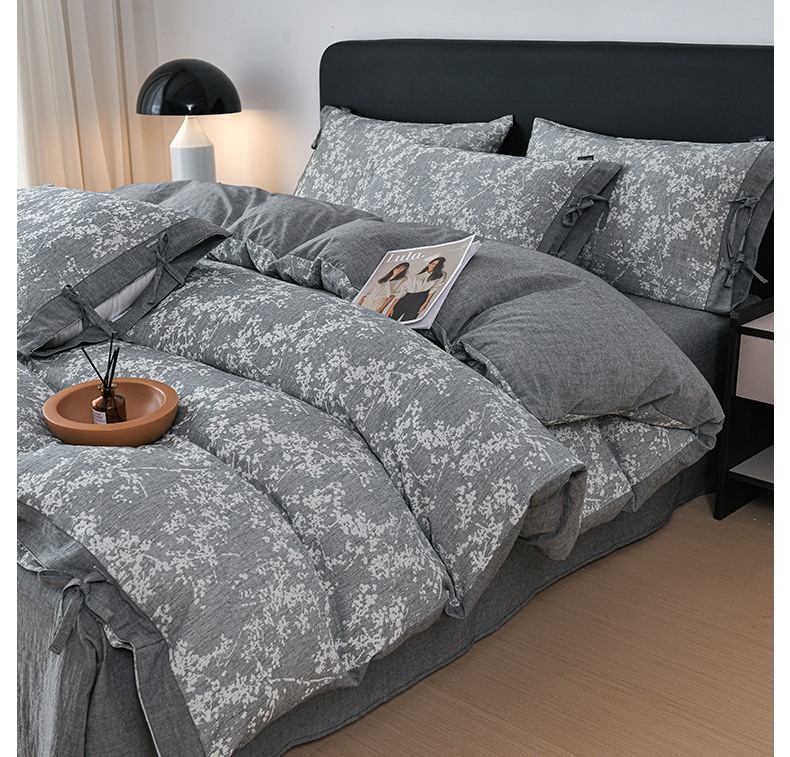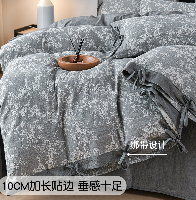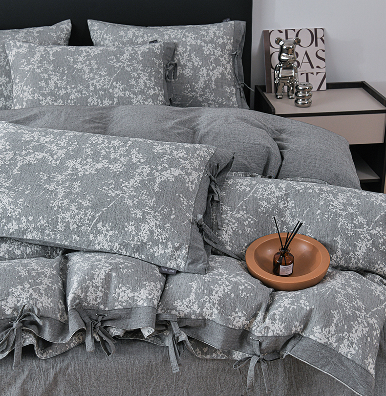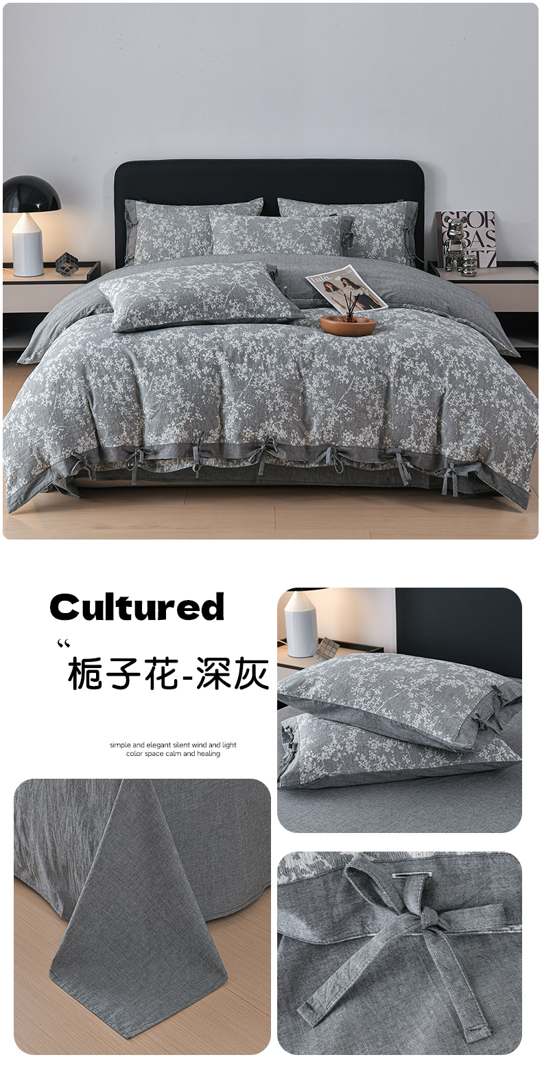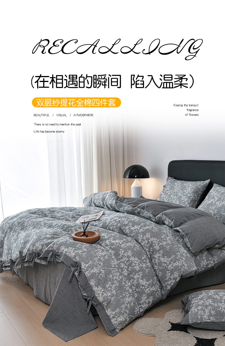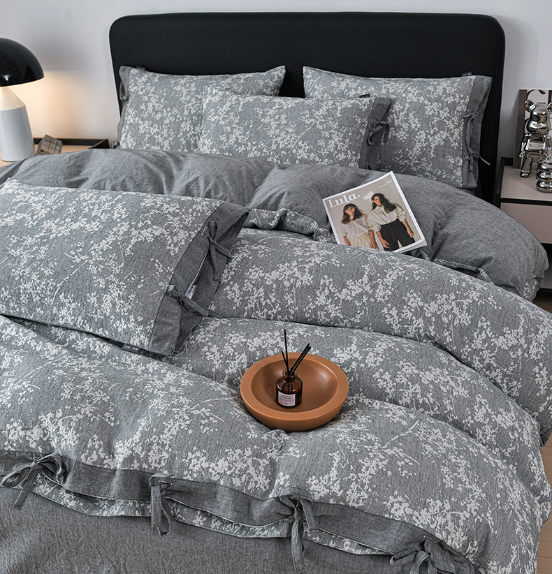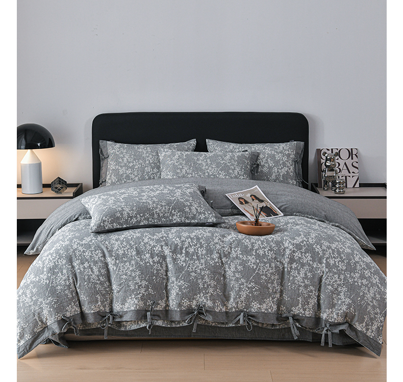 商品名称:娜娜 2024新款全棉双层纱大提花四件套 栀子花-深灰