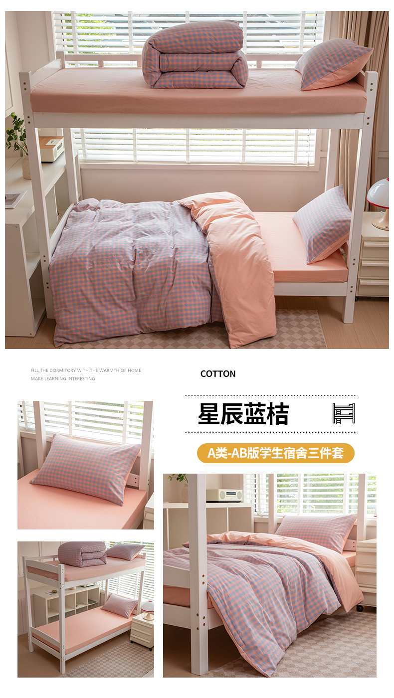 当前位置: 91家纺网 > 商品网购 > 床品套件 > 三件套 > 柠萌家居 2025新款无印良品风色织水洗棉A类学生宿舍三件套 星辰蓝桔