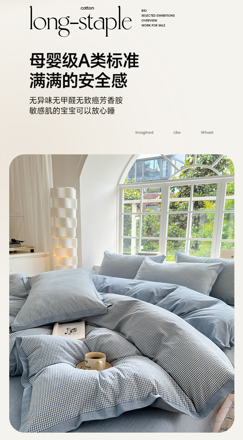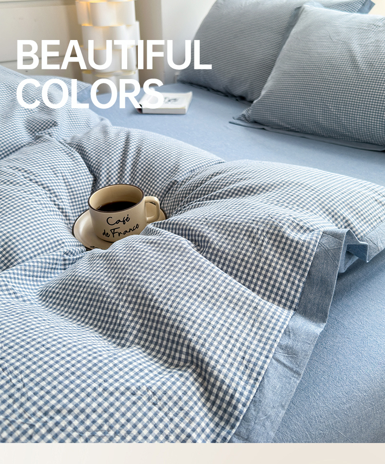 当前位置: 91家纺网 > 商品网购 > 床品套件 > 四件套 > 水洗棉四件套 > 宜家坊 2024新款全棉色织水洗棉宽边断角四件套 爱的邂逅-蓝