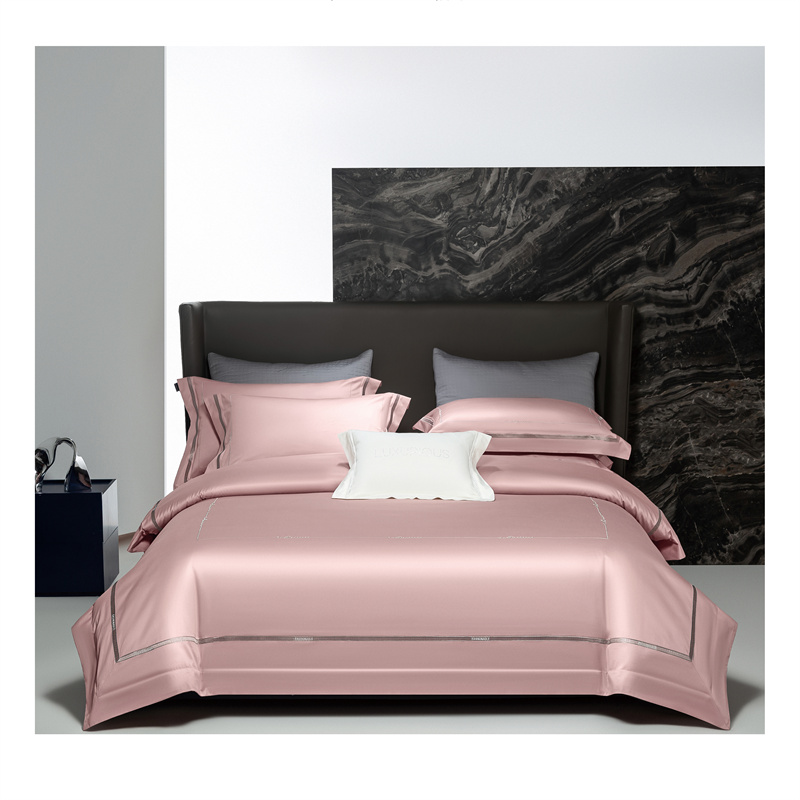 (总)玖玖爱家纺 2023新款100支贡缎长绒棉四件套,粉色,灰,金色,橘色,绿色,水蓝