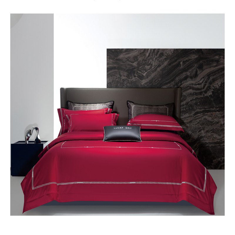 总玖玖爱家纺 新款轻奢风120支贡缎长绒棉高精密刺绣婚嫁系列四件套,欢喜人家,吉祥如意,金色婚典,情定一生,喜迎龙凤