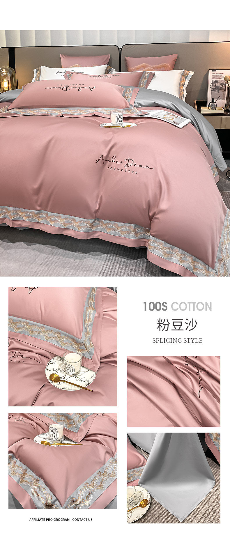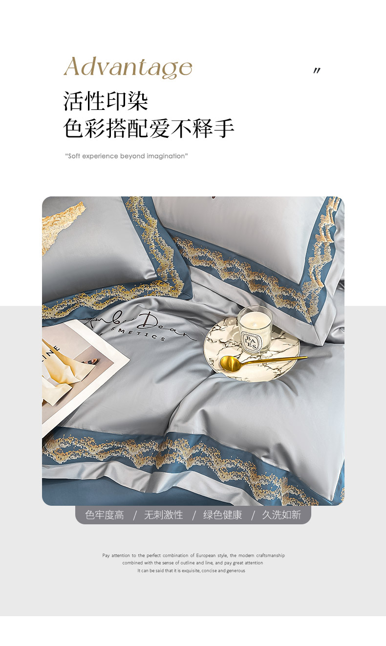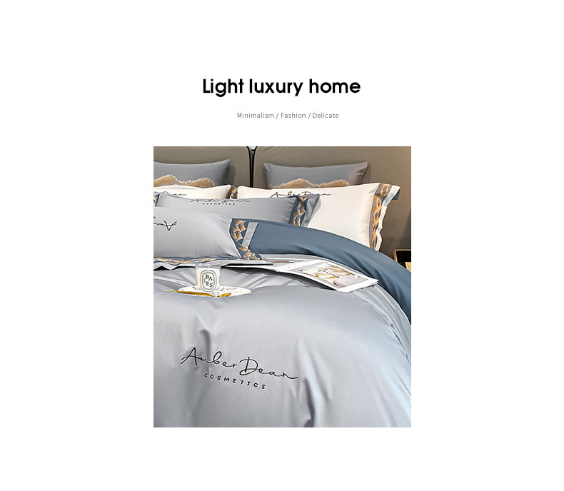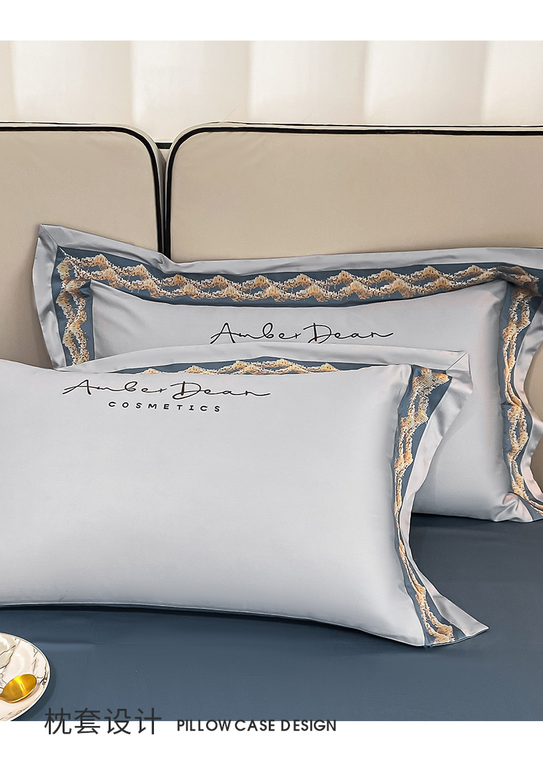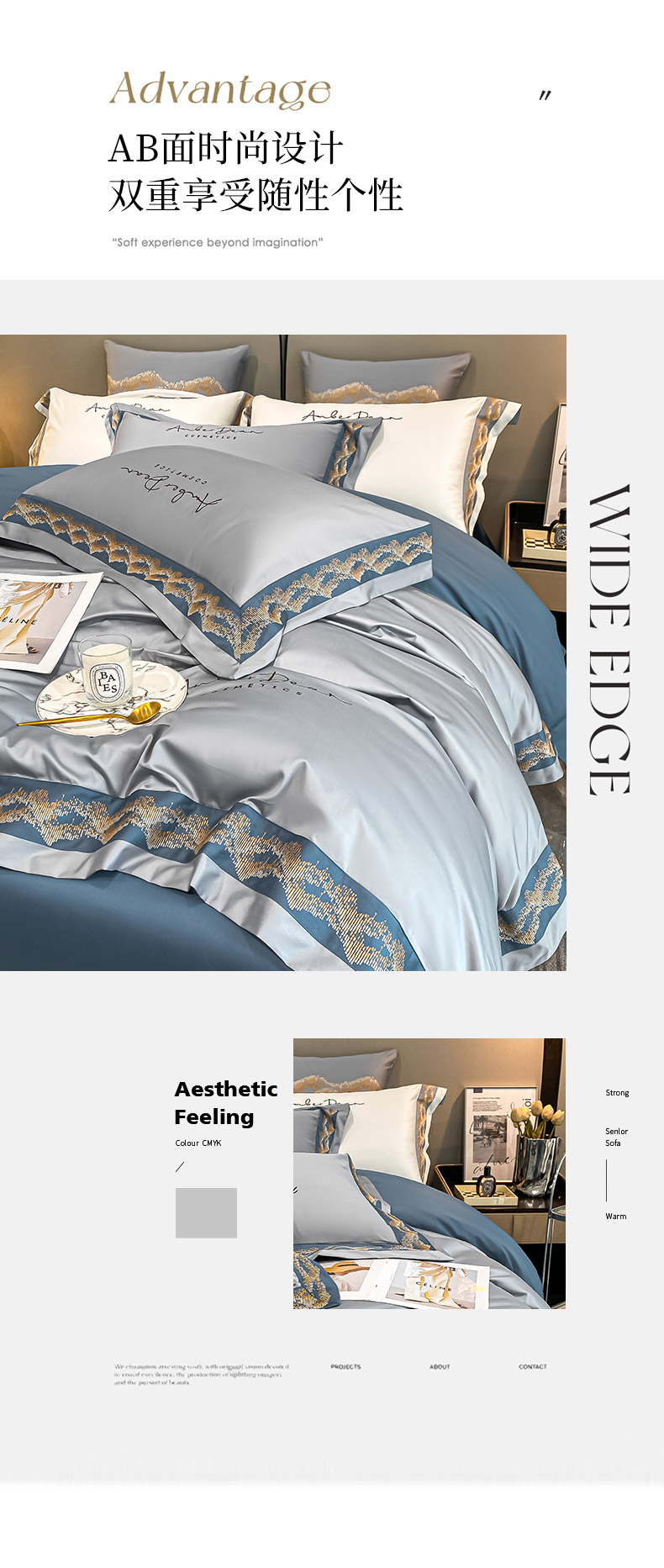商品名称: 【会员减20】100支长绒棉四件套澳棉刺绣纯色拼边高定重工轻奢简约大气酒店风床上用品 维洛-星空银