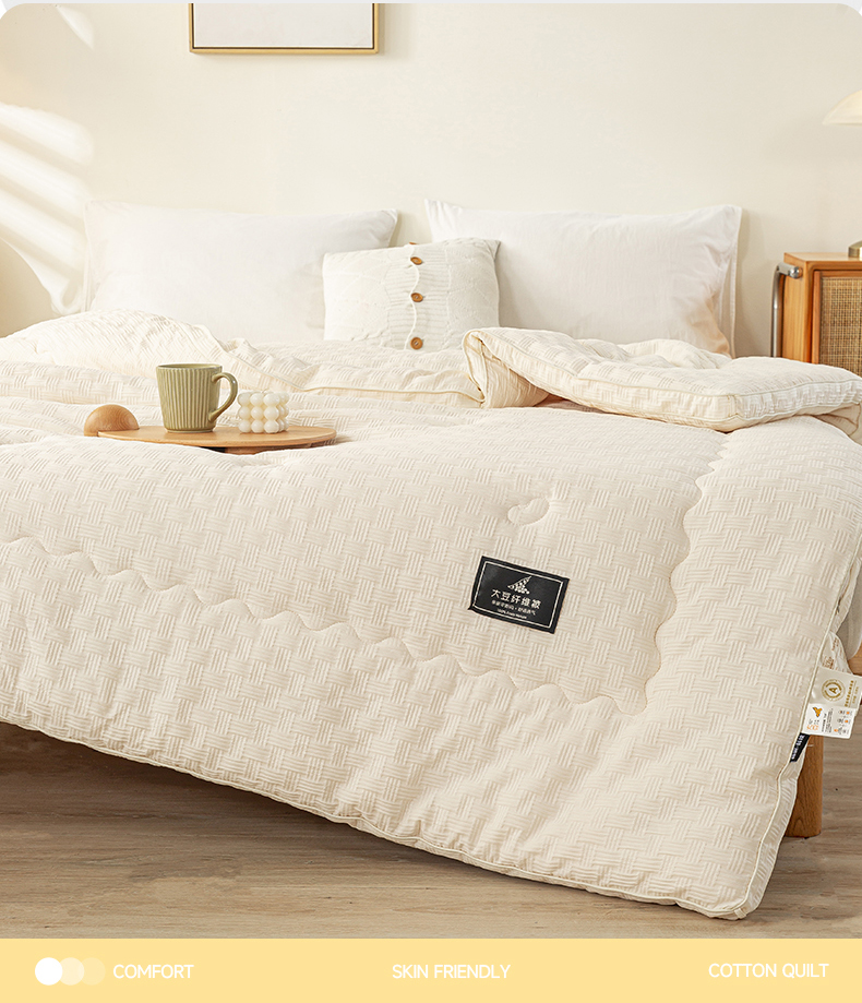居易简 2025秋冬新款直播华夫格大豆被冬被立体包边订棉工艺水洗棉大豆被 奶白