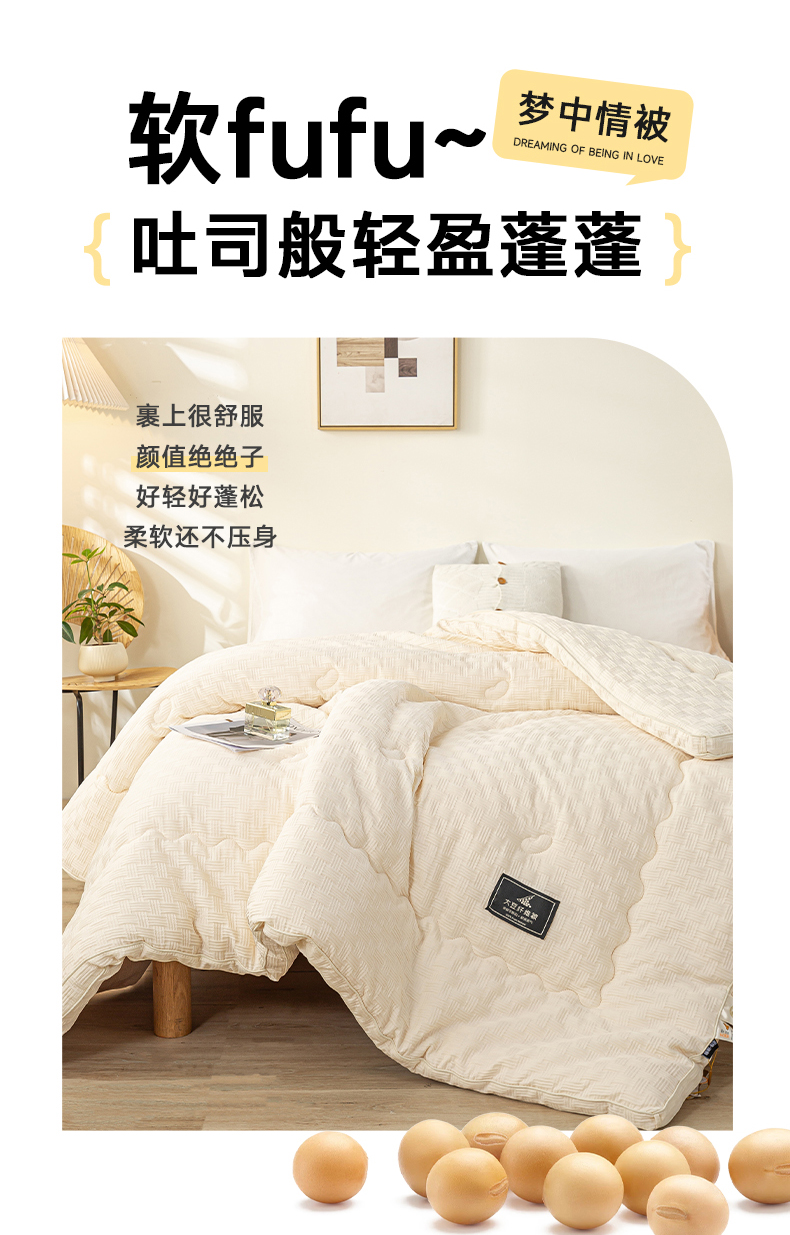 • 91家纺网 家纺一手货源 找家纺 居易简 2025秋冬新款直播华夫格大豆被冬被立体包边订棉工艺水洗棉大豆被 奶白