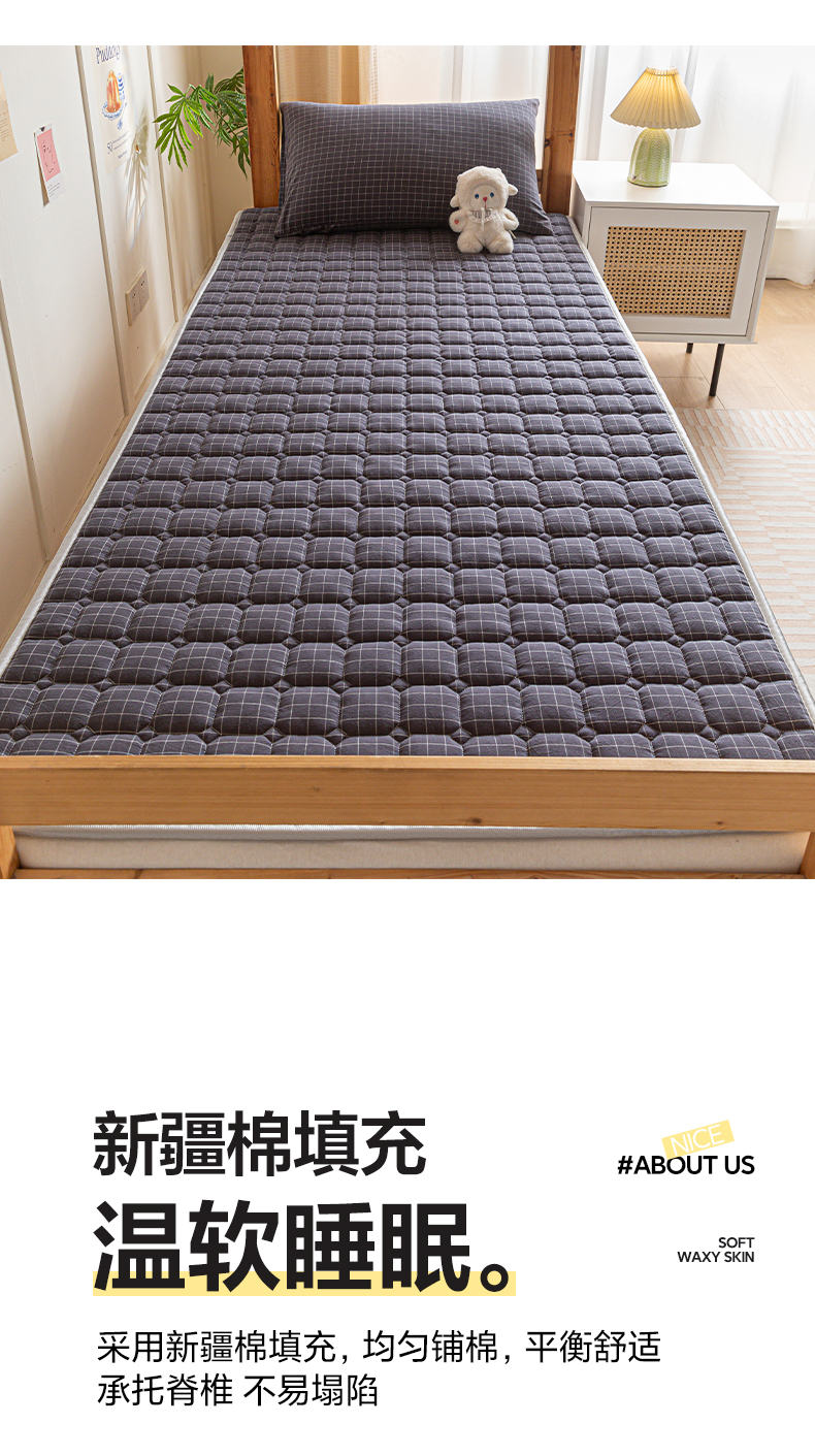 当前位置: 91家纺网 > 商品网购 > 床垫/床褥 > 普通床垫 > 卡伦家纺 2025新款全棉色织水洗棉夹棉床垫单人学生宿舍床垫 灰小方格