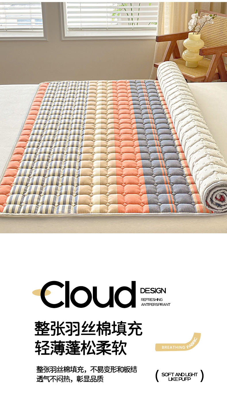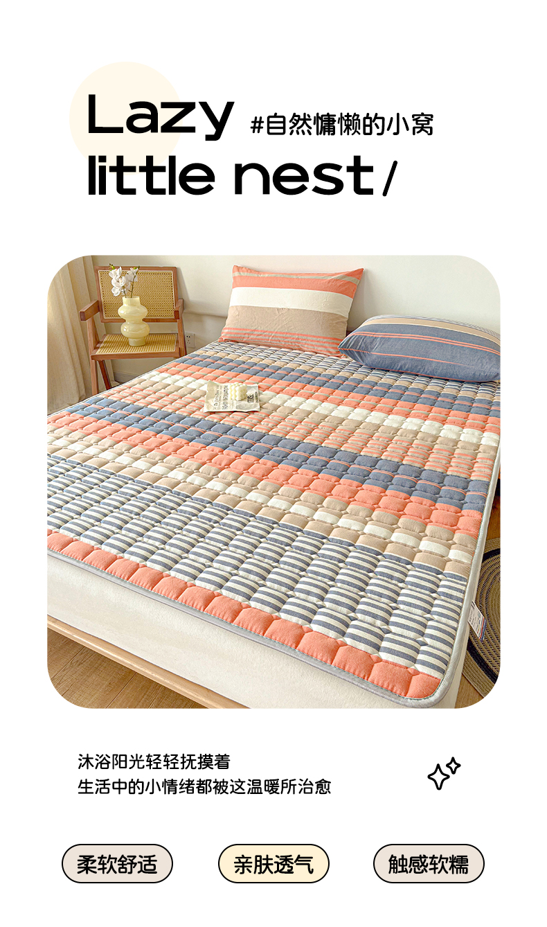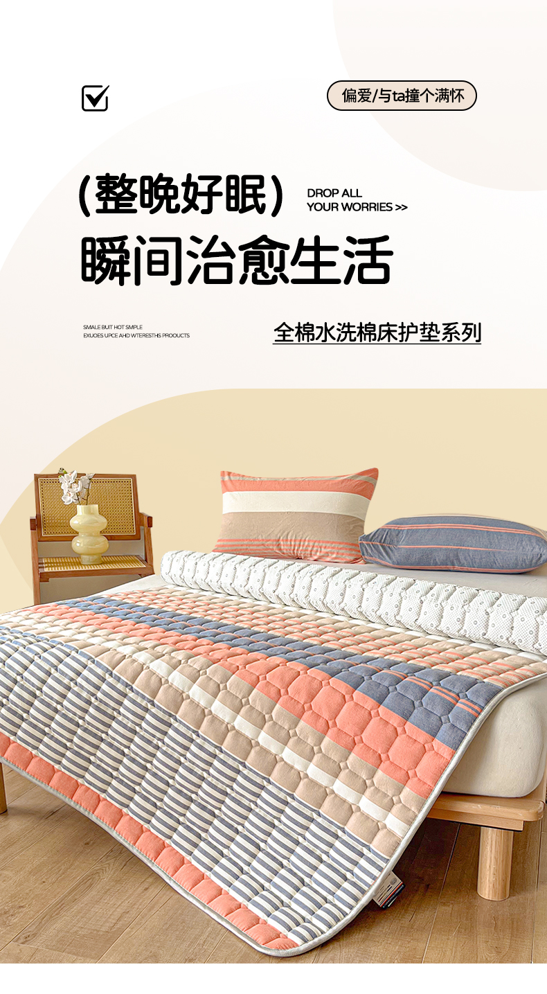 当前位置: 91家纺网 > 商品网购 > 床垫/床褥 > 普通床垫 > 卡伦家纺 2025新款全棉色织水洗棉夹棉床垫席梦思保护垫 橘兰咖条