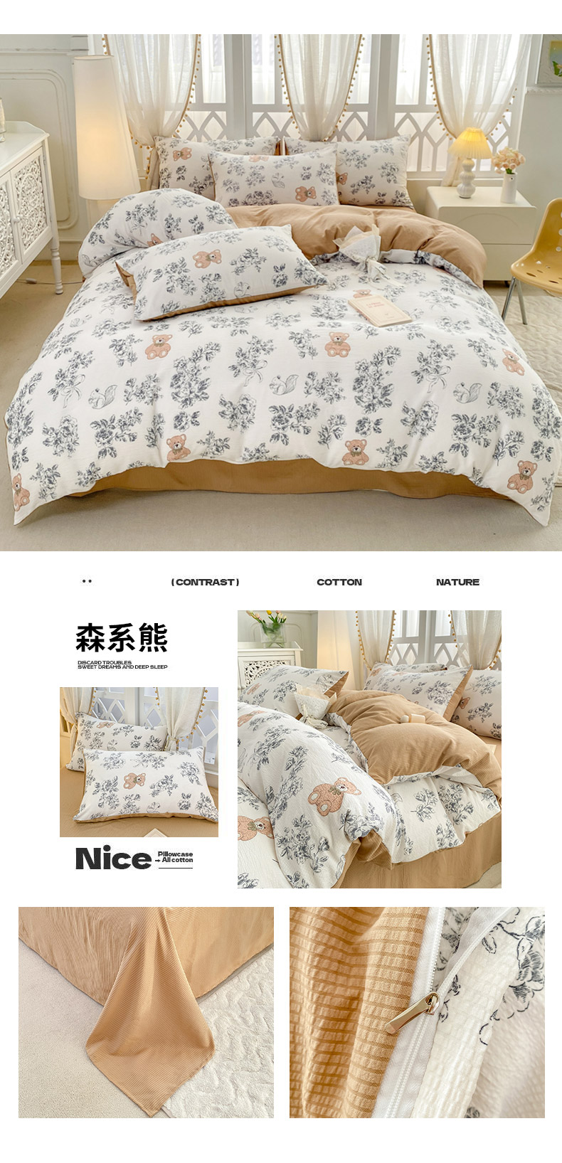 当前位置: 91家纺网 > 商品网购 > 床品套件 > 四件套 > 全棉普通四件套 > 芷凡家纺 2024新款水洗泡泡棉四件套 森系熊
