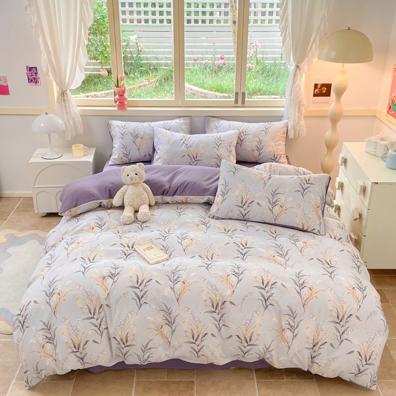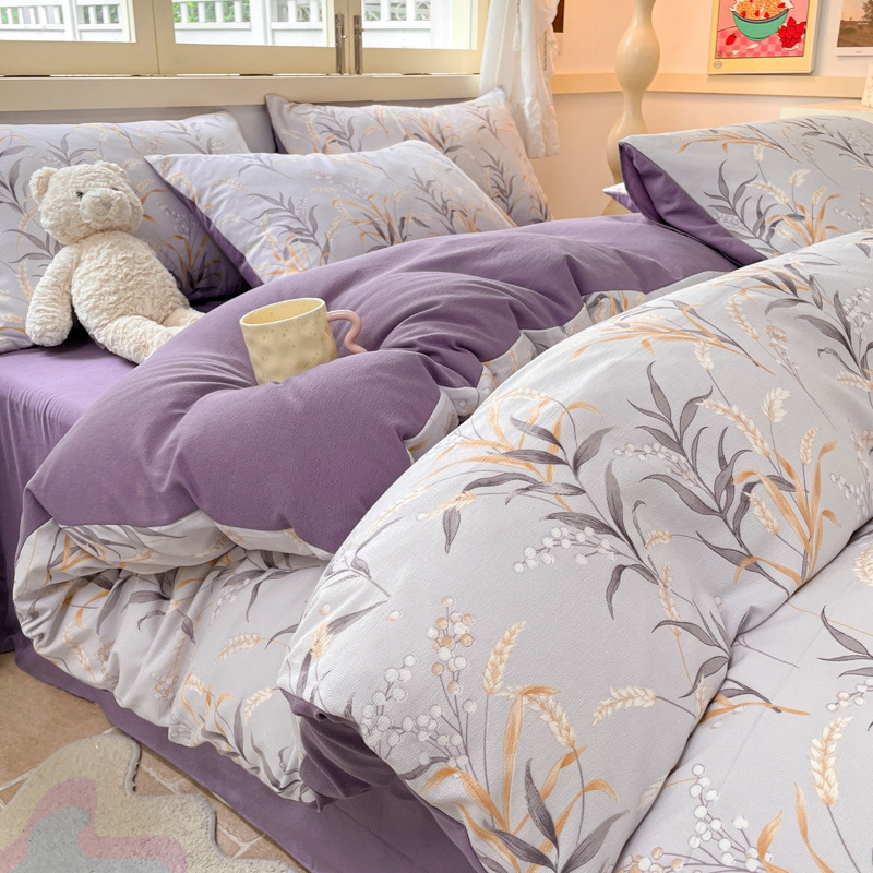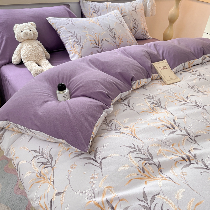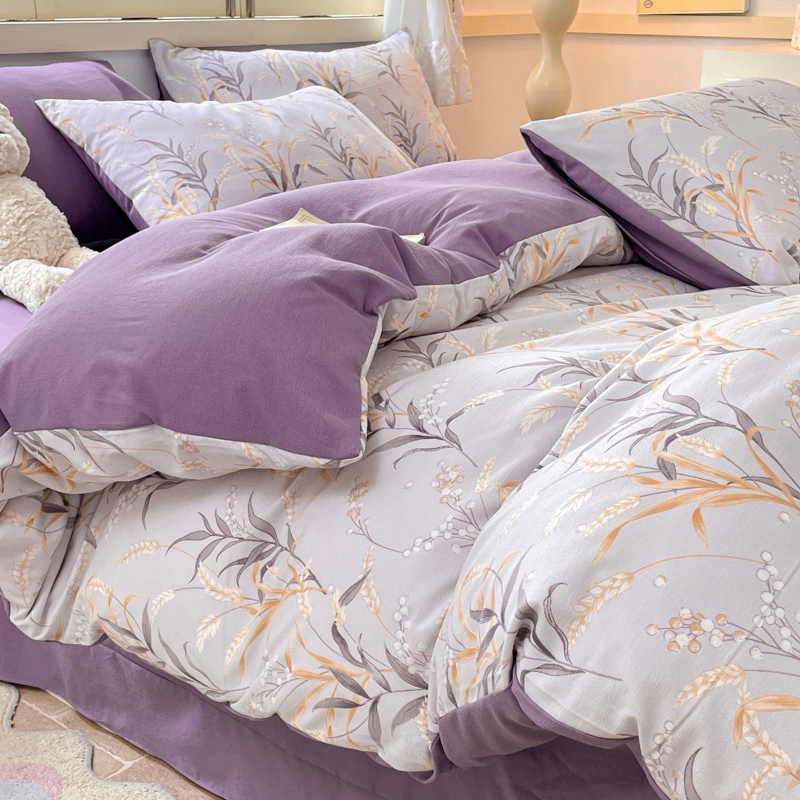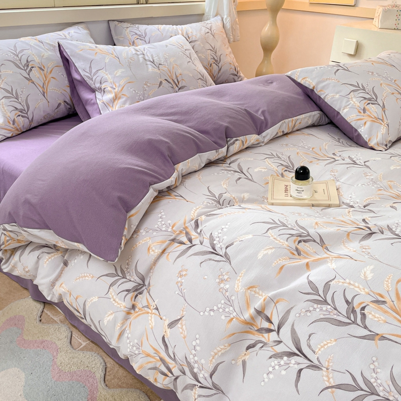 当前位置: 91家纺网 > 商品网购 > 床品套件 > 四件套 > 全棉普通四件套 > 玉海棠 2024新款AB版软糯针织棉印花四件套 大麦-紫-