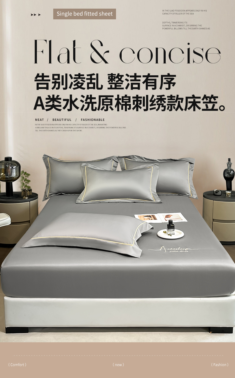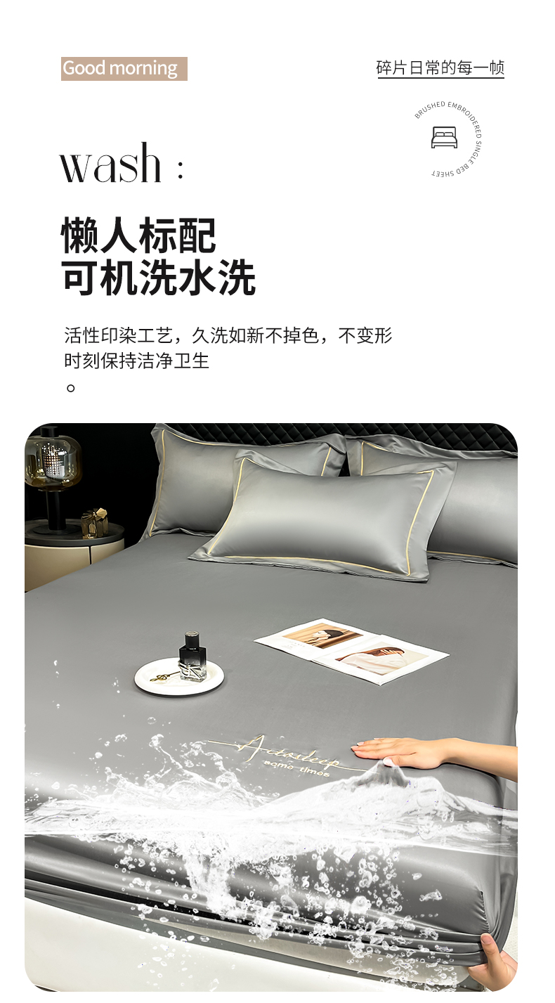 • 91家纺网 家纺一手货源 找家纺 露梦家纺 2025新款A类水洗原棉刺绣款床笠-星辰系列(提供买家秀) 星辰-高级灰