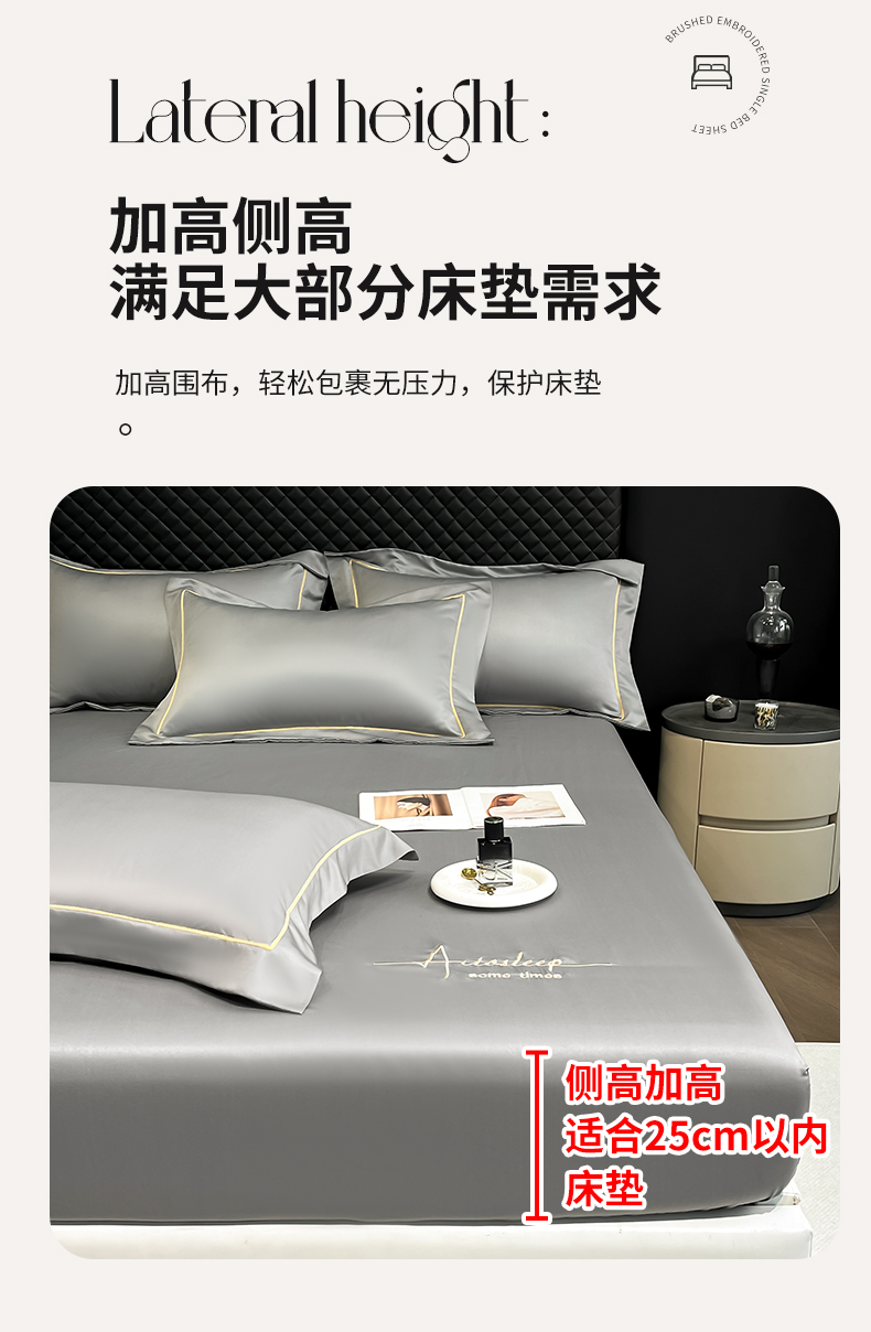 露梦家纺 2025新款A类水洗原棉刺绣款床笠-星辰系列(提供买家秀) 星辰-高级灰