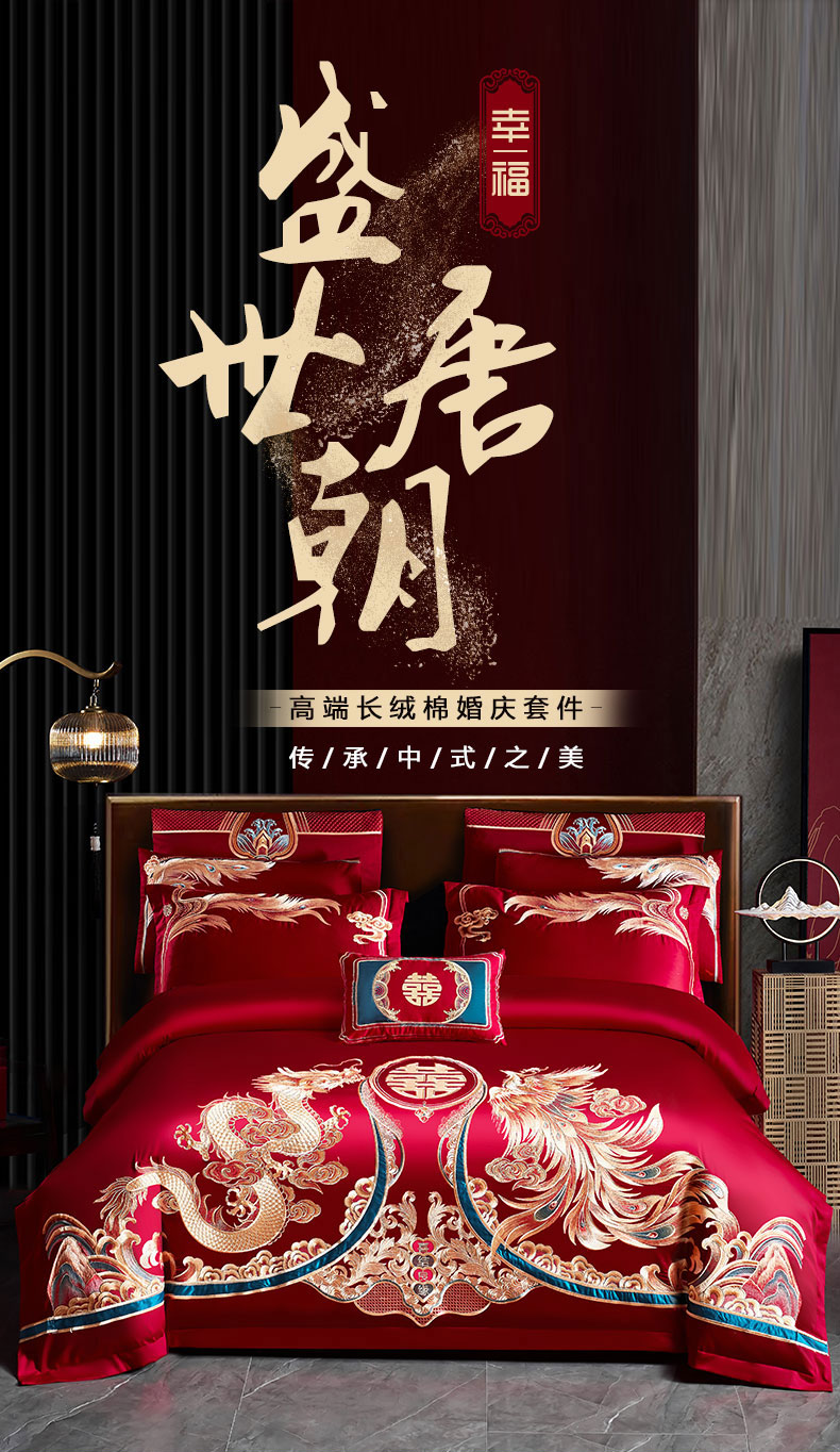 当前位置: 91家纺网 > 商品网购 > 床品套件 > 四件套 > 婚庆四件套 > 用心 2024新款双面长绒棉婚庆四件套 盛世唐朝