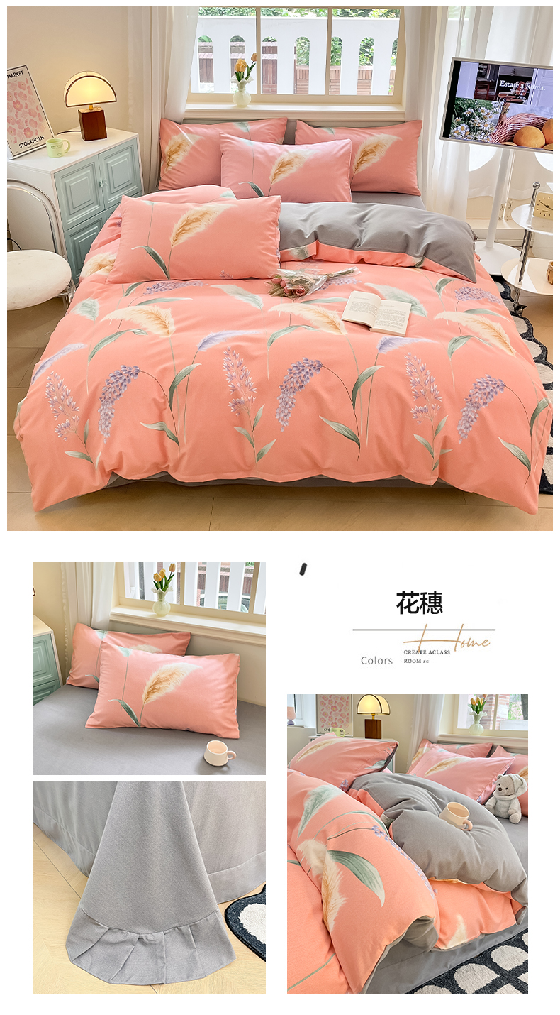 当前位置: 91家纺网 > 商品网购 > 床品套件 > 四件套 > 普通磨毛四件套 > 莱米家纺 2024新款全棉加厚磨毛印花四件套 花穗