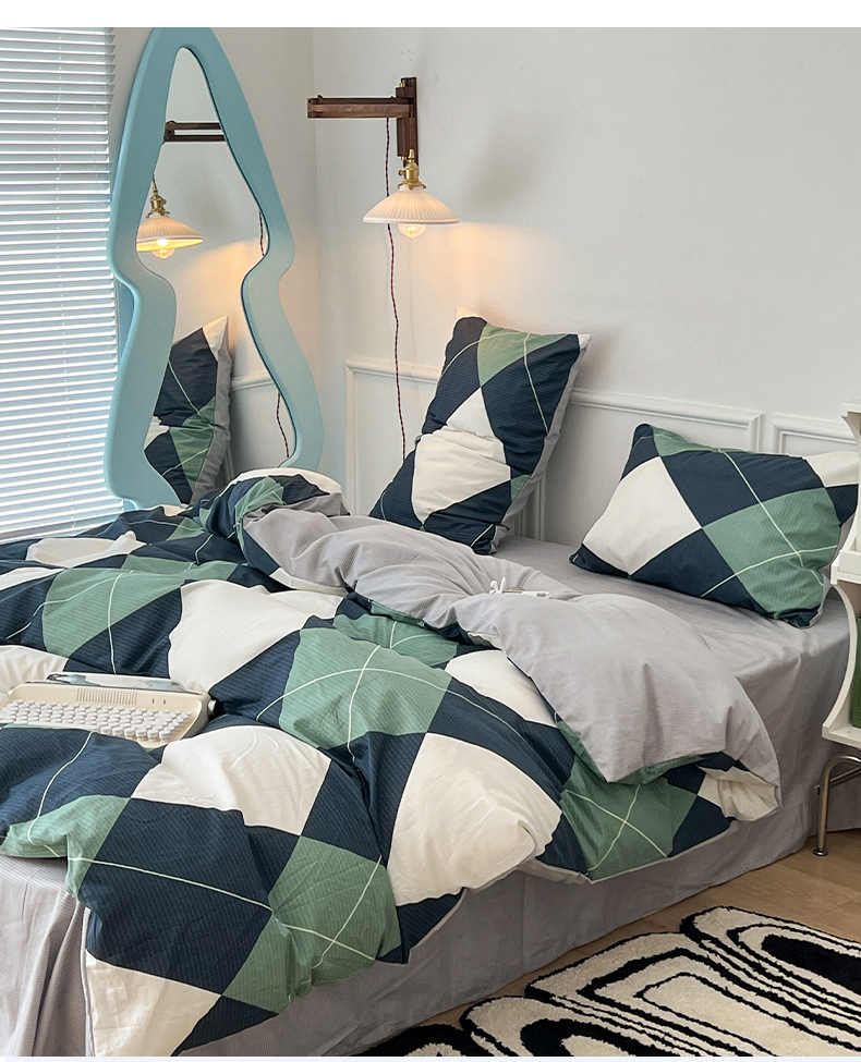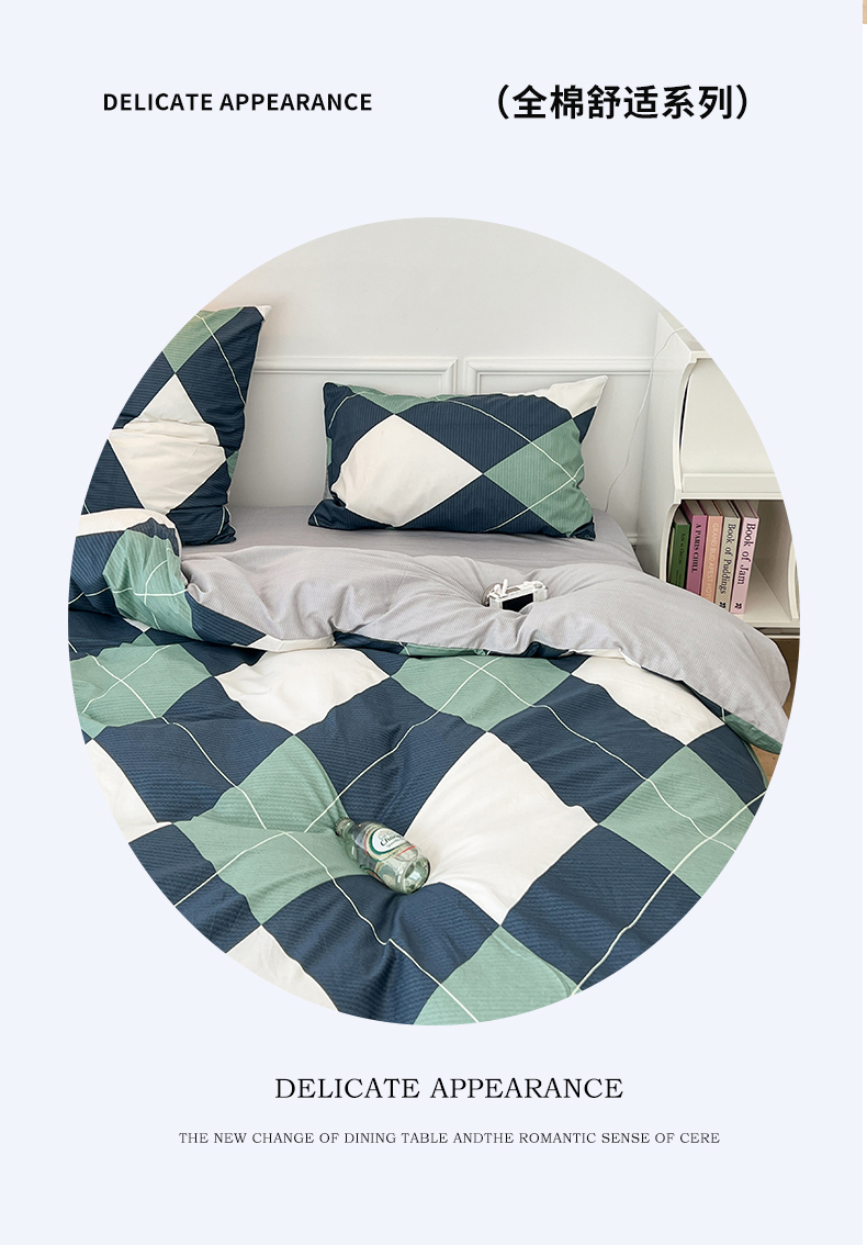 (总)昔可 2023新款全棉ins格子混搭系列四件套,ins简约绿格,粉蓝格,开心果格,学院格纹,粉绿格,海盐兰格,黄绿格,夏日蓝条,芝士黄条,紫芋泥芝士格