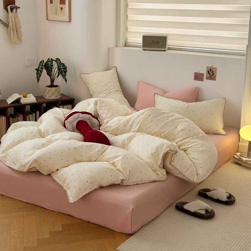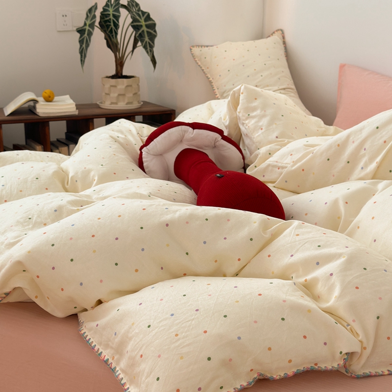 洋铭区(原狠狠爱) 2024新款全棉双层纱四件套 炫彩波点
