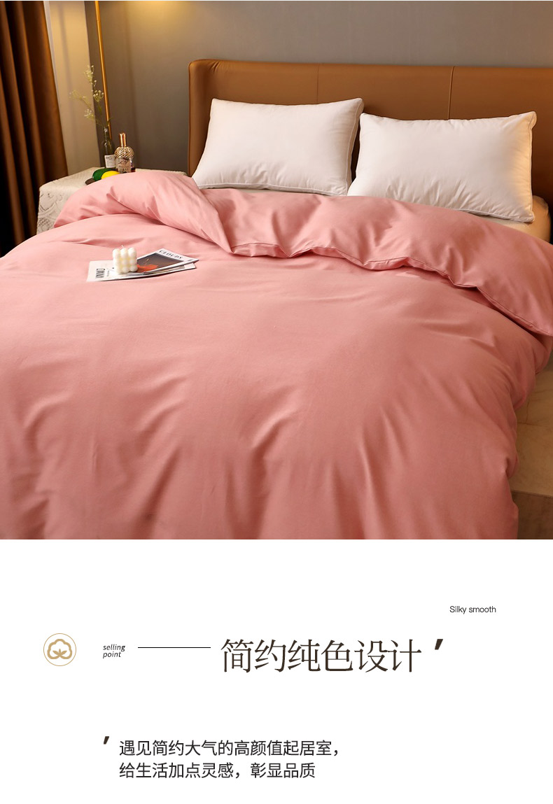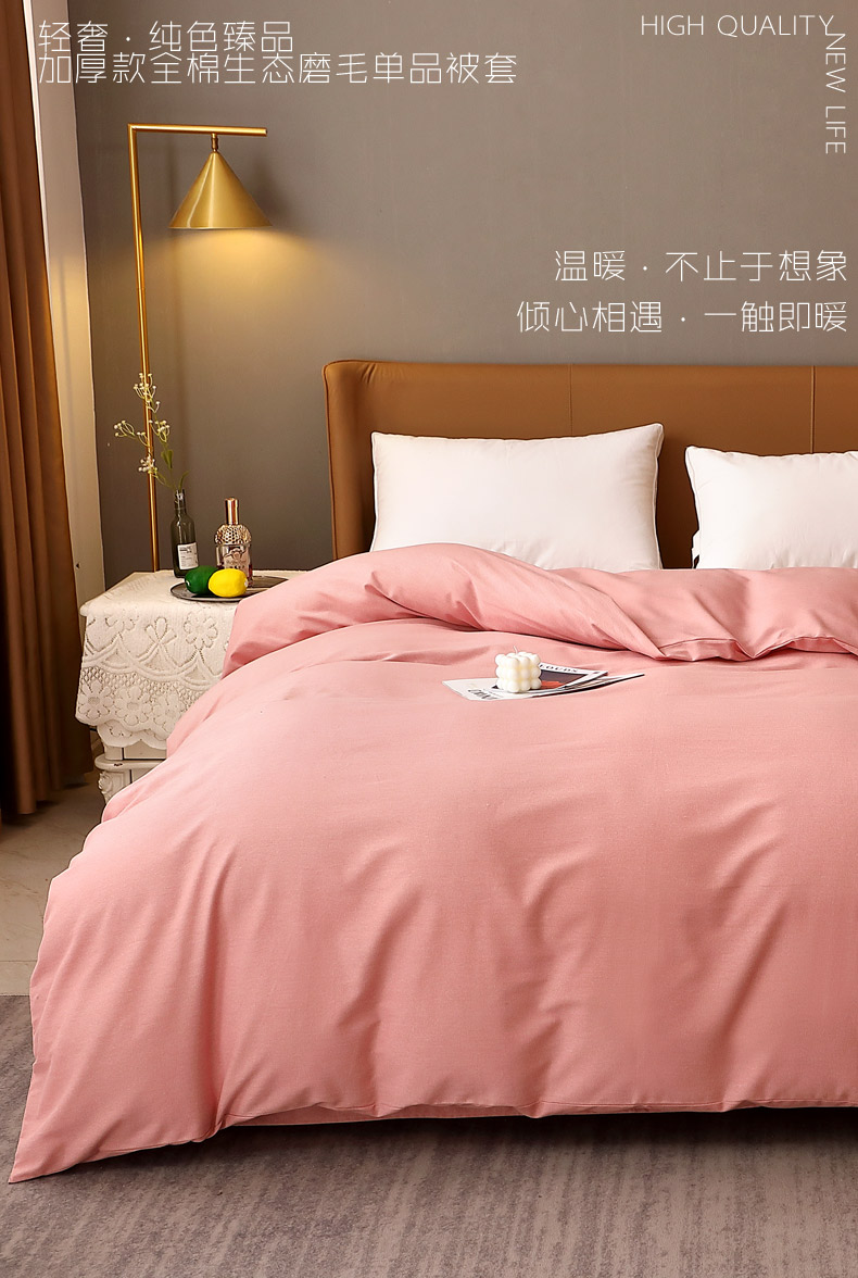 晶缦家纺 2024新款加厚纯棉喷气全棉纯色生态磨毛多规格单品被套 纯依-粉玉