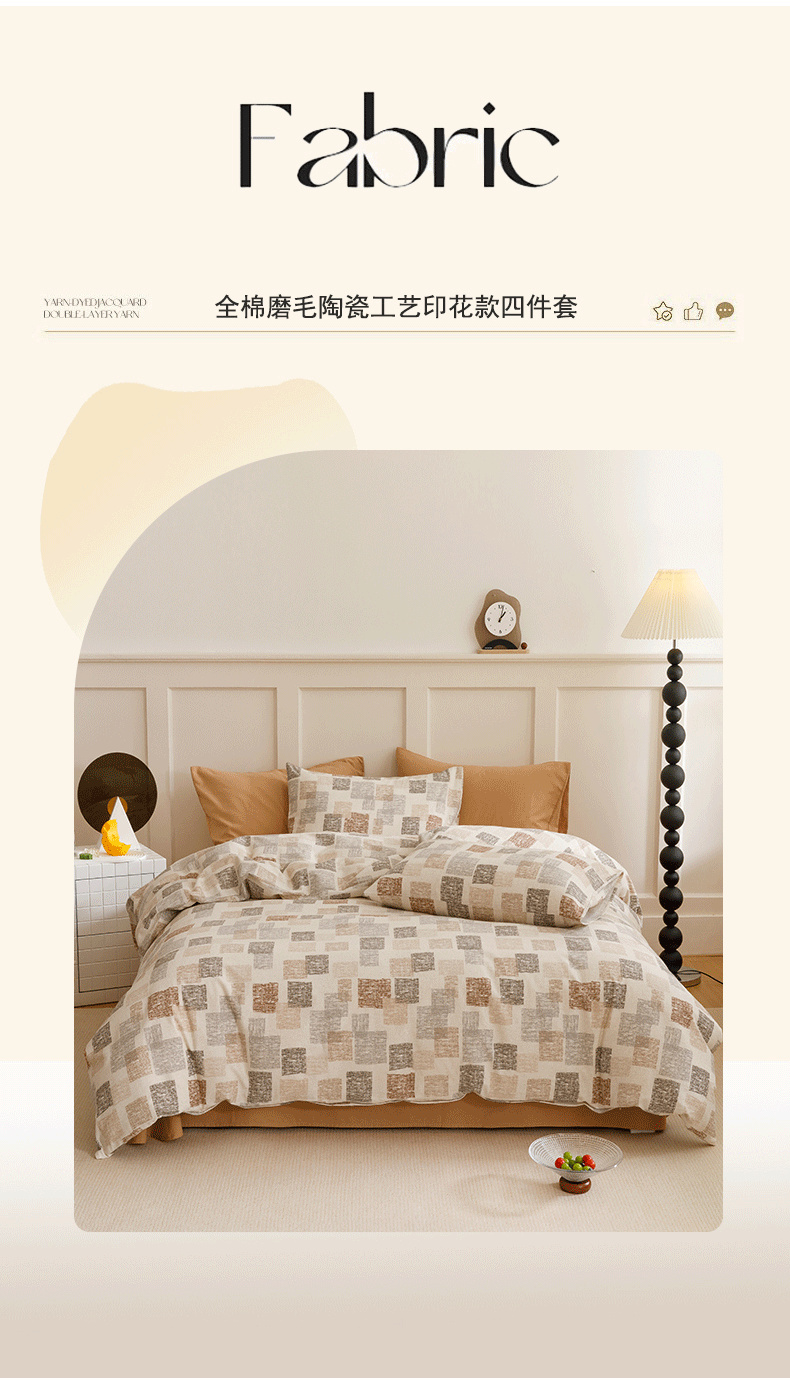 当前位置: 91家纺网 > 商品网购 > 床品套件 > 四件套 > 全棉普通四件套 > 2024新款全棉陶瓷磨毛印花四件套 品格